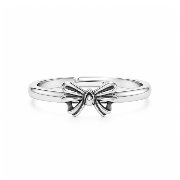 Sterling Silver Bow Ring – Romantic, Feminine, Adjustable - Unaloe Handmade Ring For Women