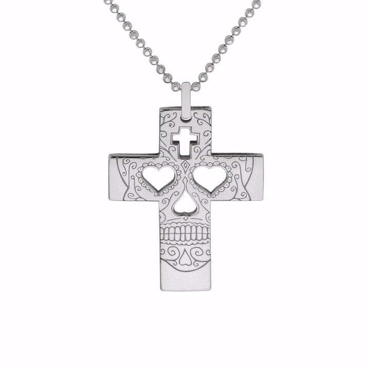 This Small Silver Sugar Skull Cross Pendant Necklace from the Tattoo Candy collection by Cartergore is a unique piece tailored to your individuality. Flavoured with the spice of traditional tattoo styling, it encapsulates a premium, bespoke beauty and a unique edge that is as hard to define as you are. This piece is perfect for layering with other charms and pendants, allowing you to build your own personal story and express yourself in a way that truly talks your talk.