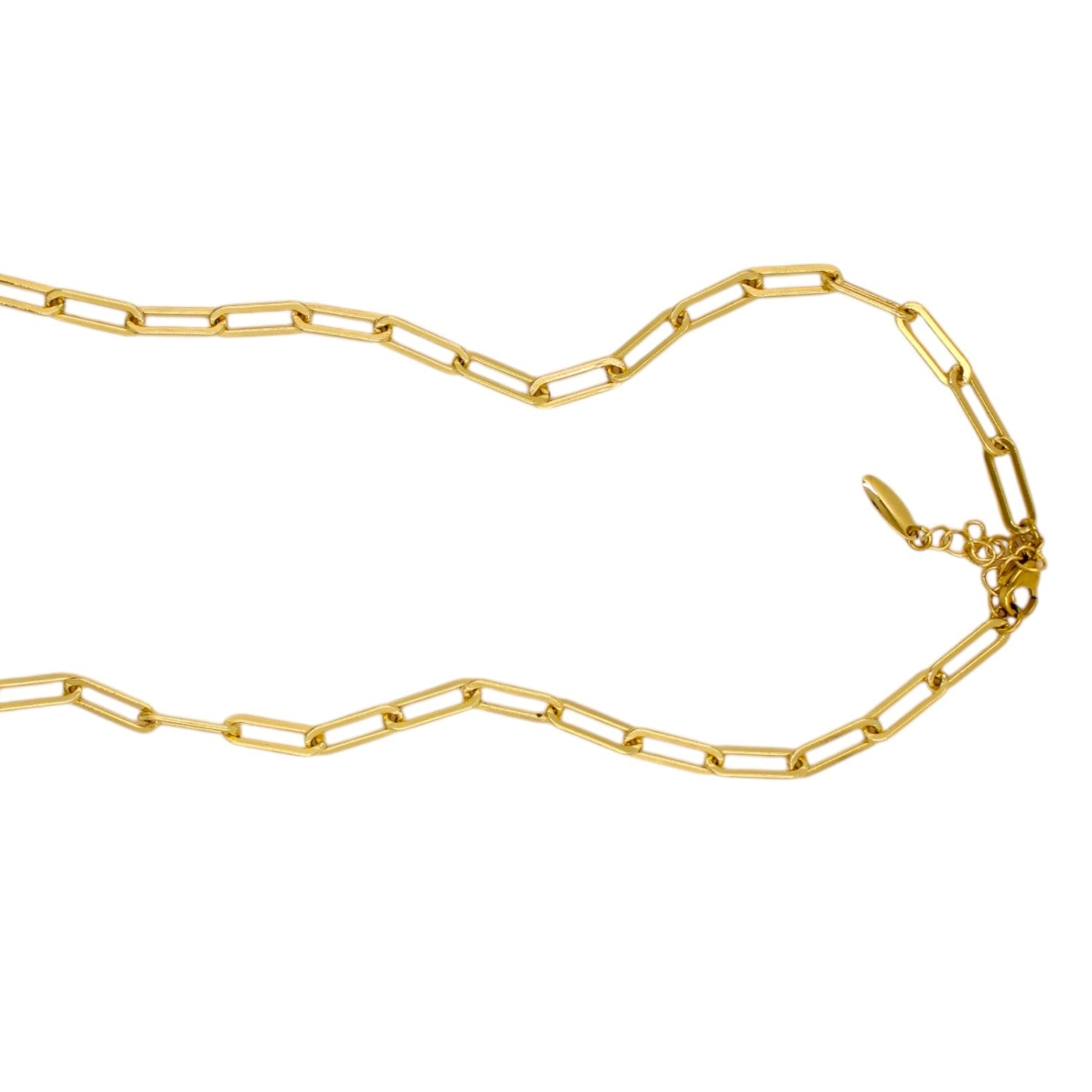 Rhodium-plated chain necklace. Hypoallergenic, tarnish-resistant, and waterproof. Made in Turkey.
