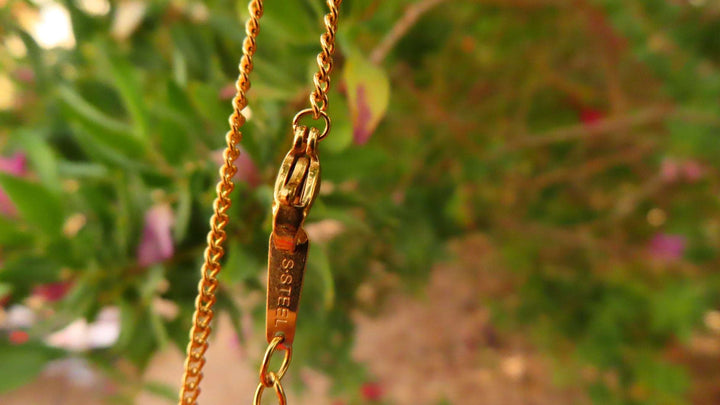 This necklace is meticulously crafted from 925k silver with 18k gold plating. It is waterproof, hypoallergenic, and features multicolored gems and a reversible pendant.