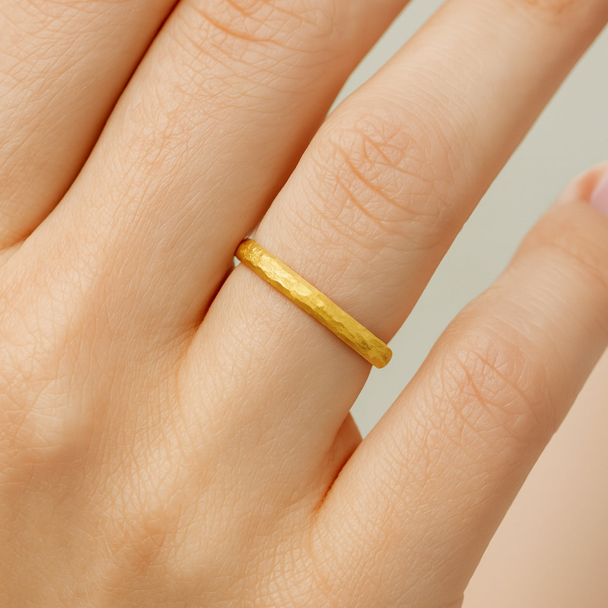 This Wide Hammered Band by Unaloe symbolizes strength, grace, and authenticity. With a hand-hammered artisanal texture, it tells the story of resilience and dreams shaped daily with determination. Worn as a personal reminder or dedicated to loved ones, this versatile ring carries profound symbolism of trust and love, reflecting Unaloe’s commitment to authentic Italian craftsmanship.