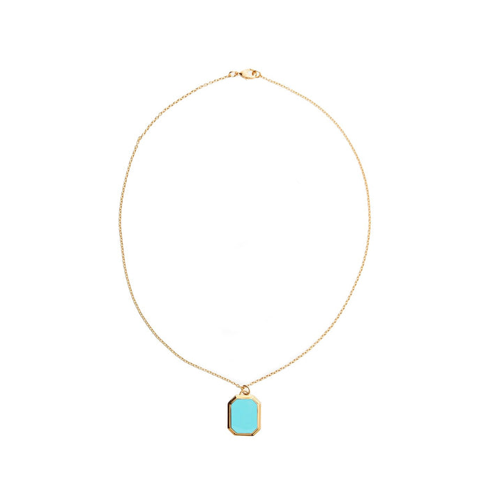 This Enamel Pendant Necklace by Lovard is a vibrant accessory in light blue. It is designed to "boost your mood all summer long" with its pop of color. This handmade necklace is perfect for adding a fun and cheerful touch to your everyday jewelry or for matching with your favorite bag.