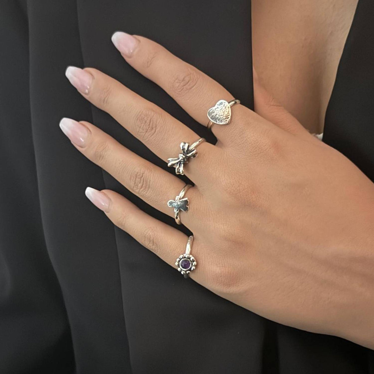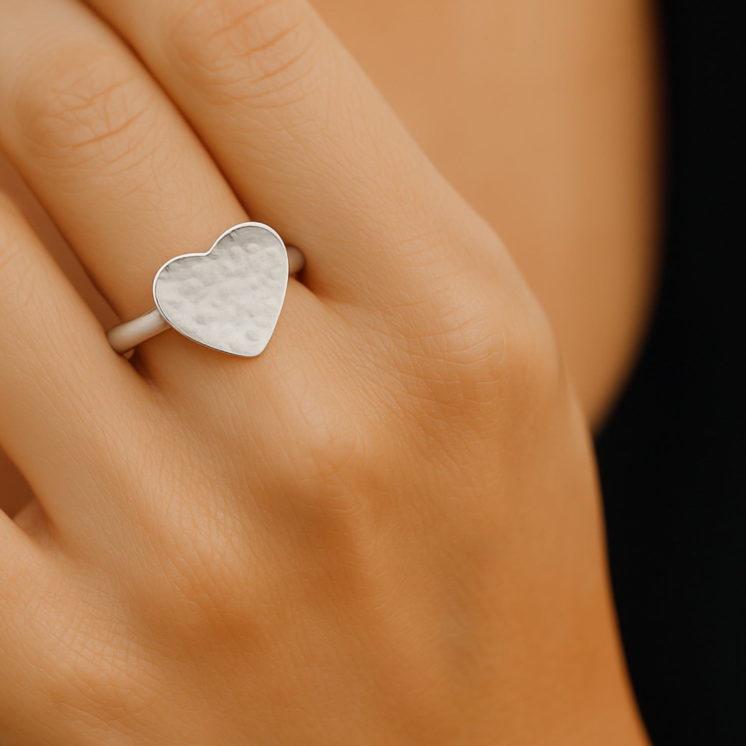 Large Hammered Heart Ring In Sterling Silver - Unaloe Adjustable Bold Love Statement