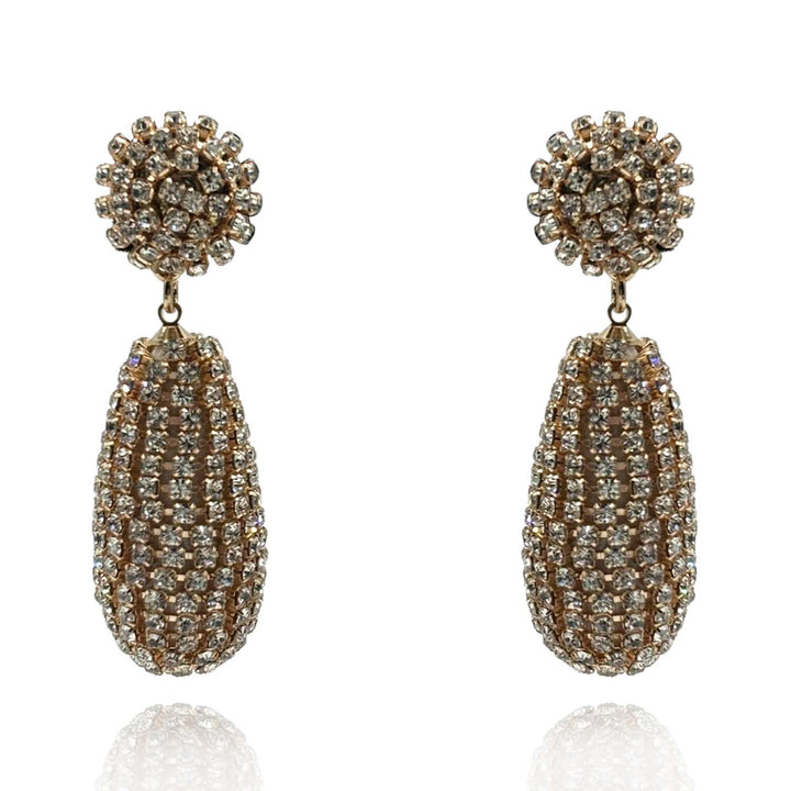 Gold Rhinestone Chain-Covered Teardrop Resin Earrings