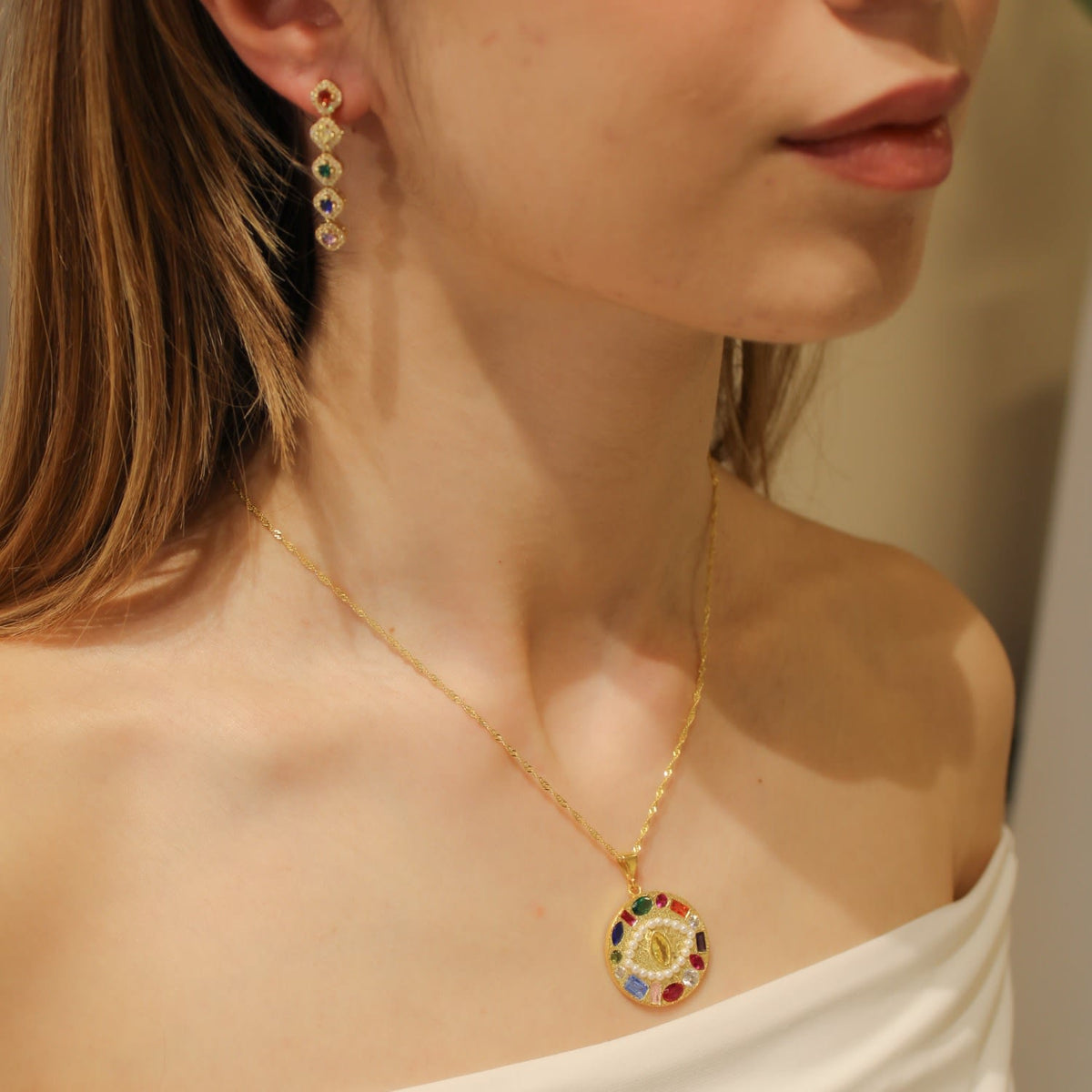 Rhodium-plated sterling silver. Swarovski crystals. Hypoallergenic, waterproof, and anti-tarnish. Made in Turkey.