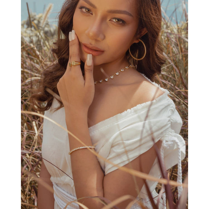 These Lana Zirconia Stone Minimalist Hoop Earrings by Viea are where sophistication meets sparkle with effortless grace. Crafted to perfection, their sleek and lightweight design makes them incredibly comfortable for all-day wear. The hoops are adorned with small, meticulously arranged cubic zirconia stones that catch the light from every angle, ensuring a dazzling sparkle. The subtle allure of these earrings lies in the delicate placement of the stones, with even the backstones designed to dazzle. They're perfect for creating a side-view glam look.