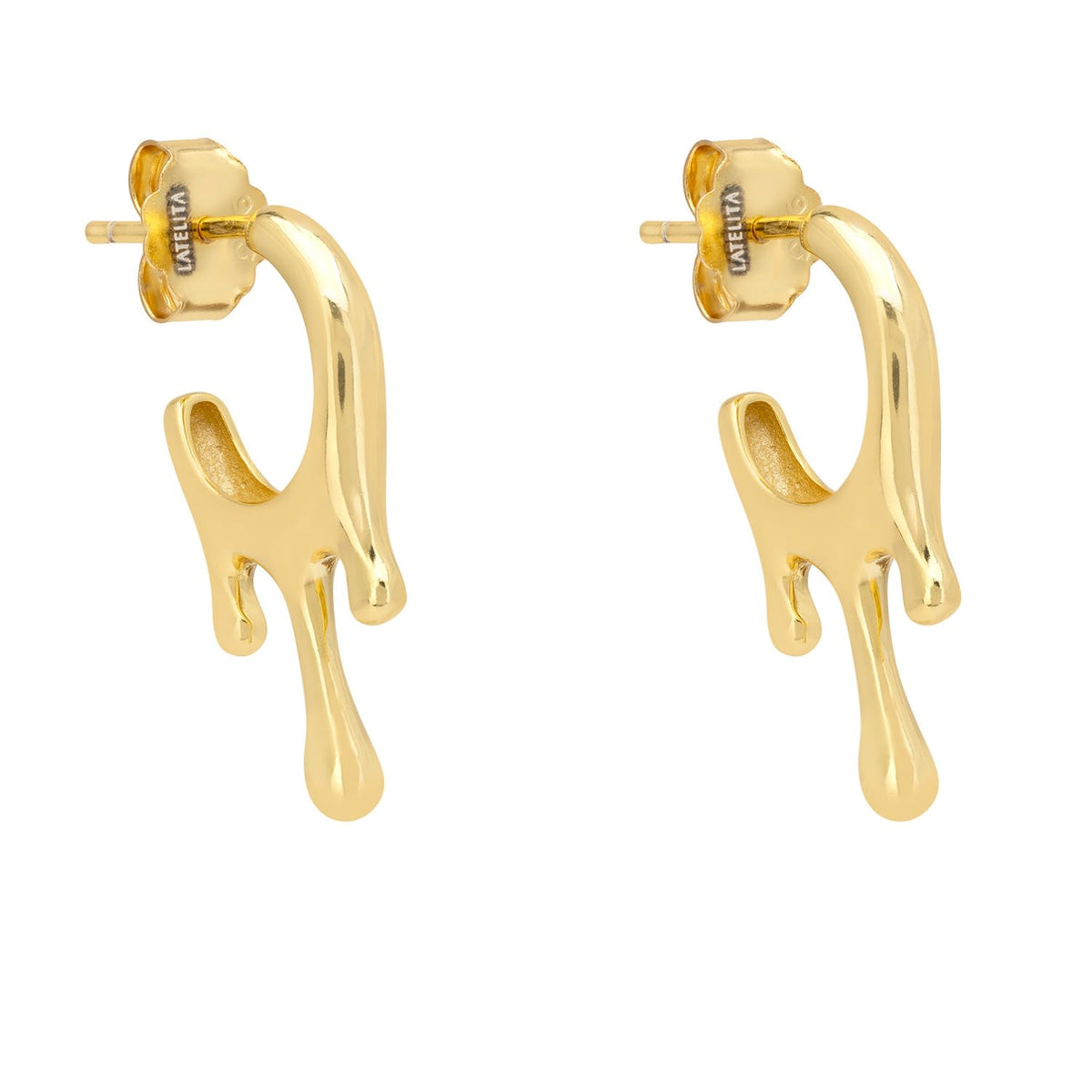 These Mini Magma Hoop Earrings by Latelita are a golden twist on a contemporary classic. Handcrafted from 925 sterling silver with a rich 18ct gold plating, they glow with a warm, molten radiance. Their fluid, organic curves echo the beauty of molten metal in motion, while the high-polish finish adds a touch of modern glamour. These hoops are your go-to for effortless elegance with an edge, perfect for adding a touch of sophisticated luxury to any look.
