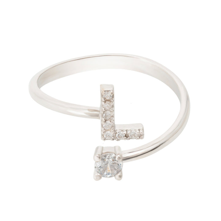 This Initial Ring Silver L by Latelita is a simple yet beautifully styled accessory that adds a hint of sparkle and a sophisticated finishing touch to any outfit. The open band allows for a slight adjustability, and it looks great when stacked with other rings. The monogram, adorned with zircons and a single cubic zirconia, makes it a perfect, personalized gift.