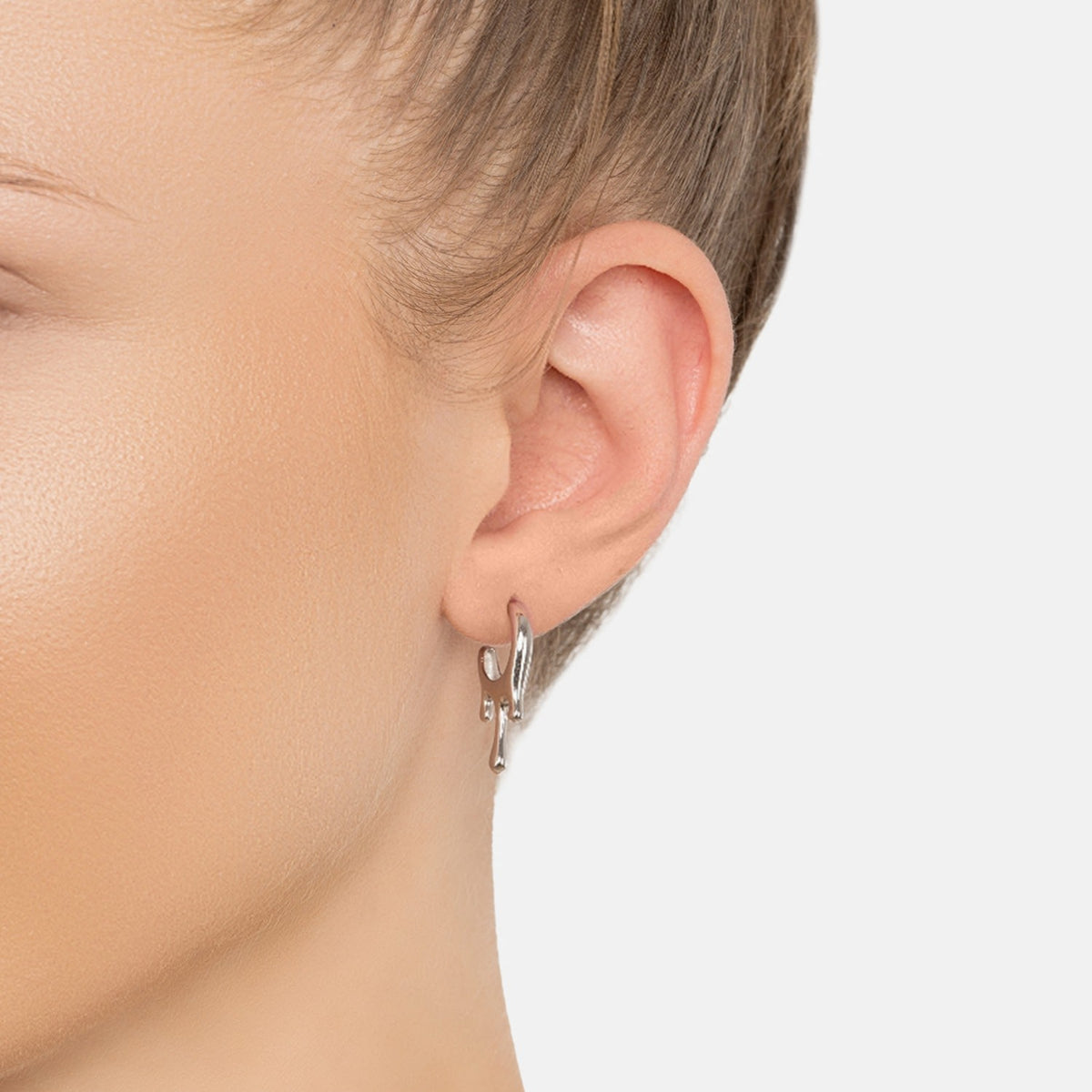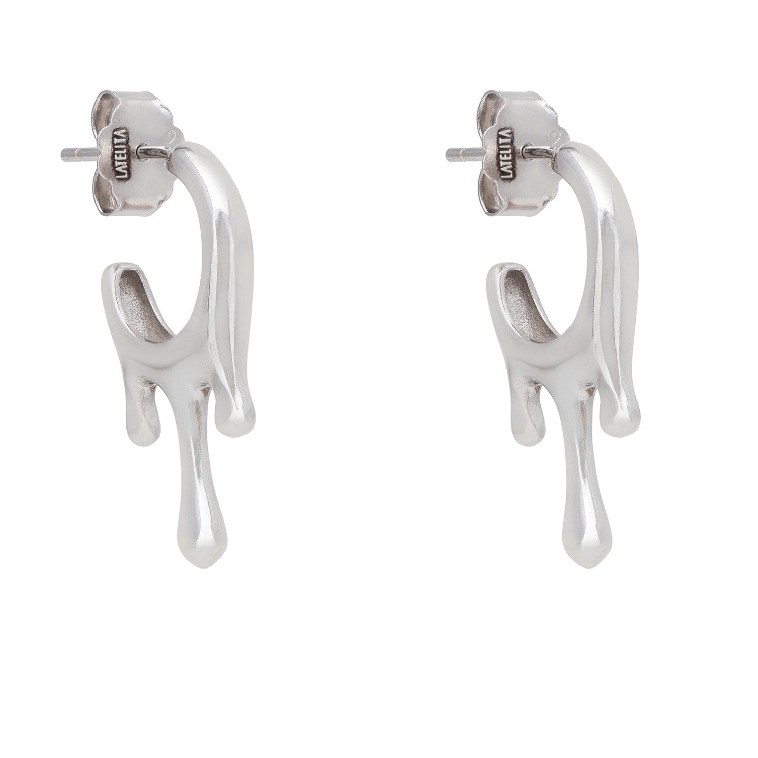 These Mini Magma Hoop Earrings Silver by Latelita are a refined twist on classic hoops. These earrings capture the fluid allure of molten metal, with a polished surface that reflects light with liquid brilliance. The organic, melting design gives them a modern edge while remaining lightweight and comfortable for day-to-night wear. These hoops are a celebration of contemporary craftsmanship, perfect for adding a bold yet effortless allure to your style.