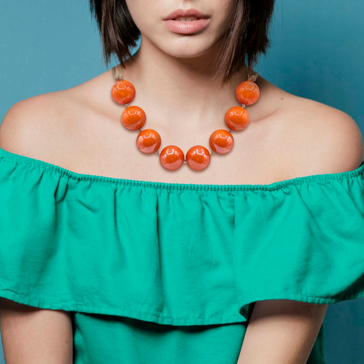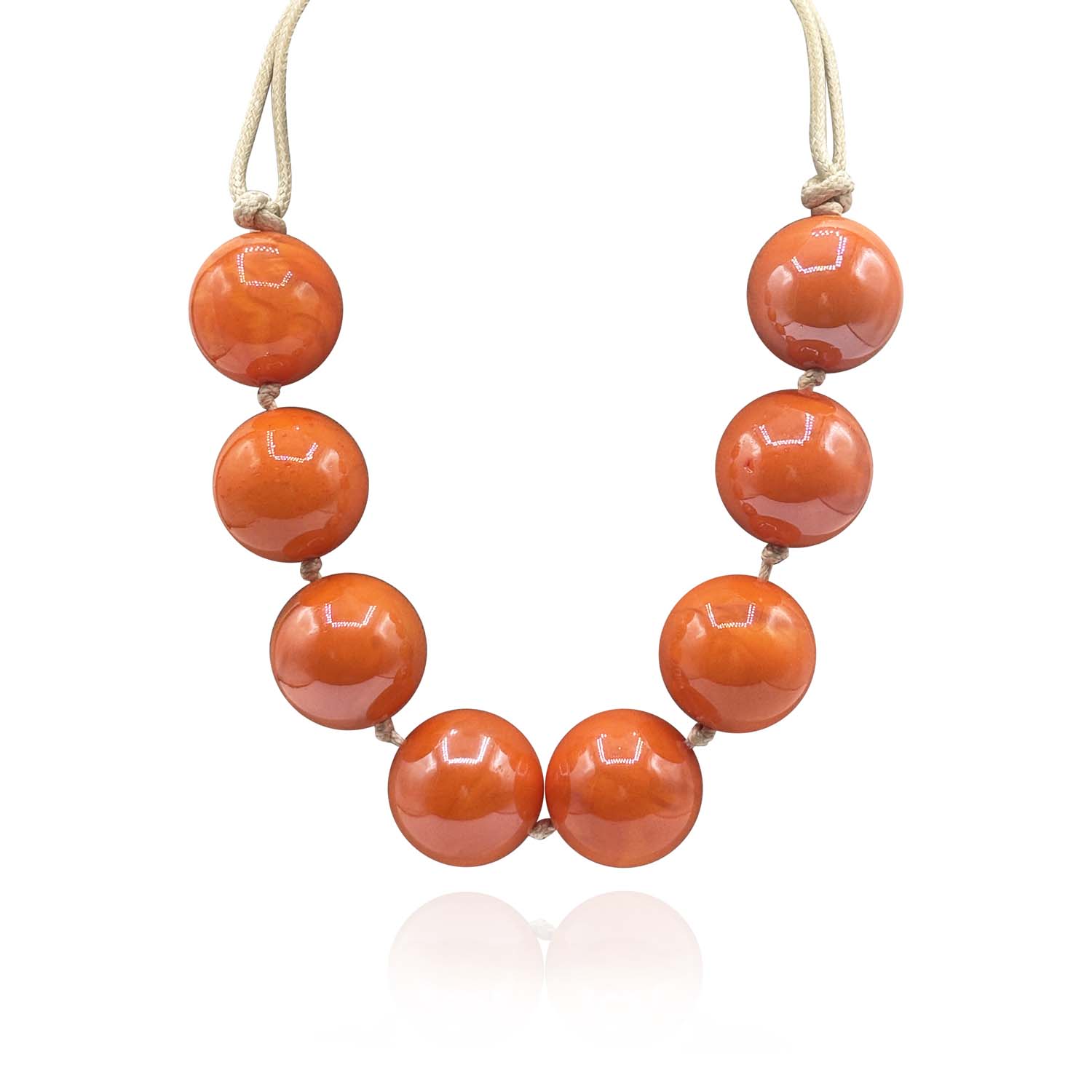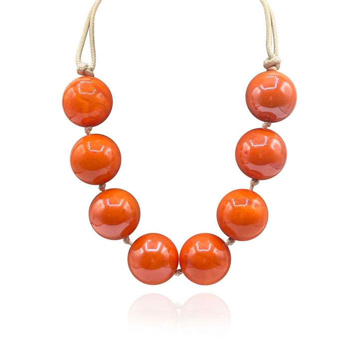 Largee Resin Bead Orange Marbled Knotted Necklace