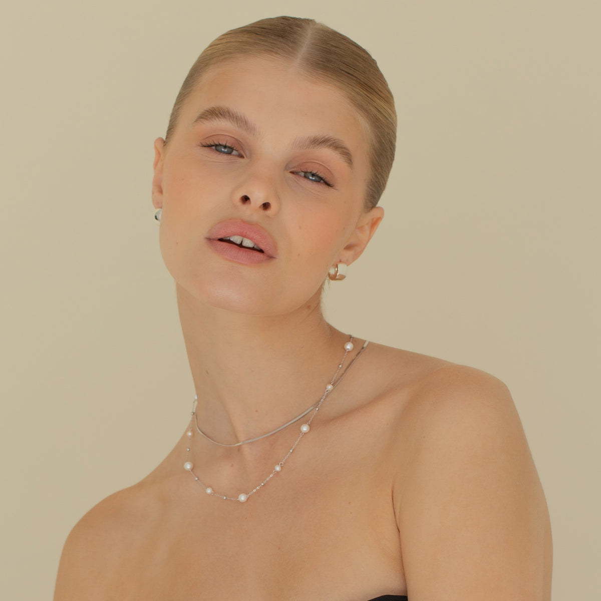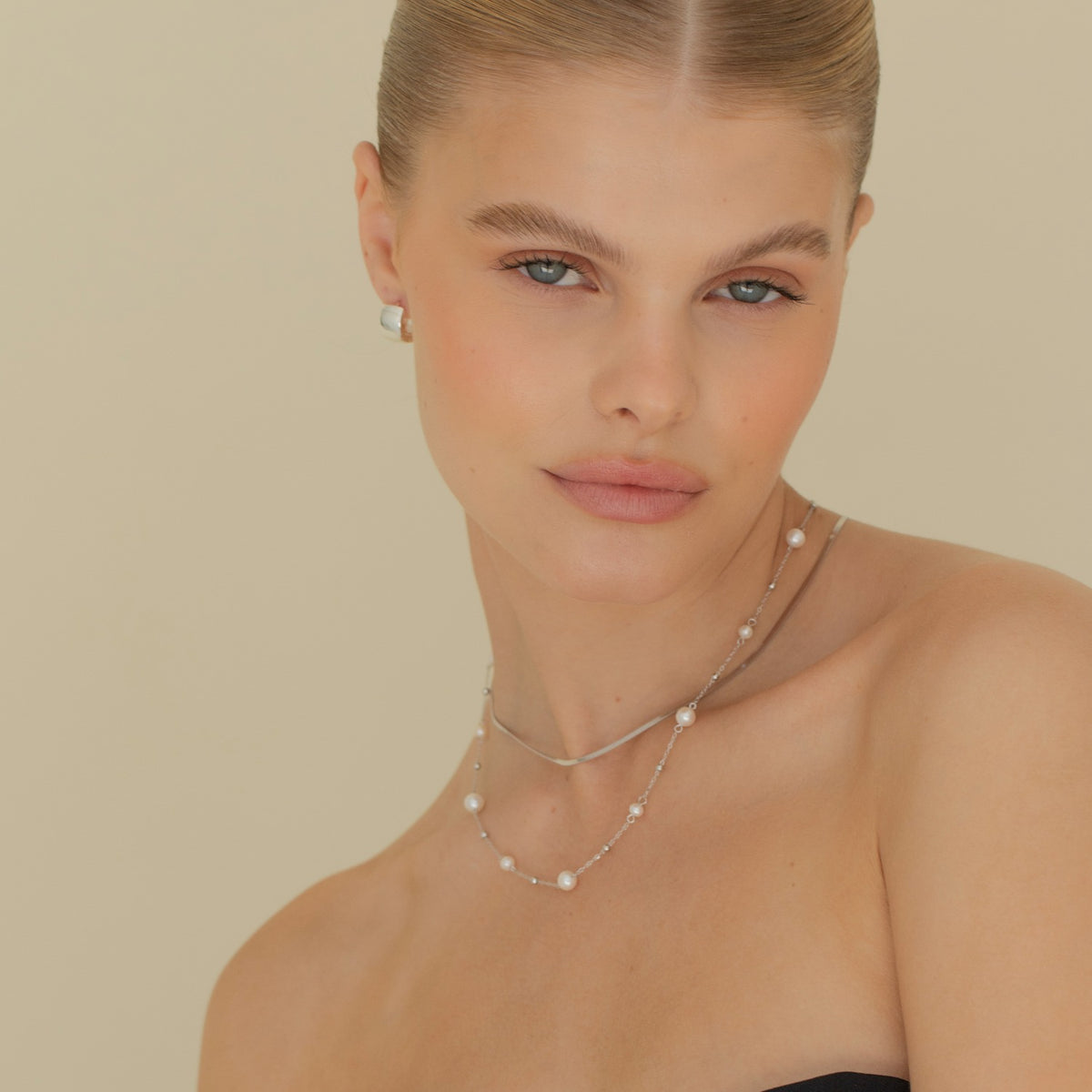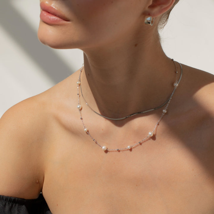 The Silver Bead Pearl Chain Necklace “Joy” by Arctic Fox & Co. is a fresh, modern take on pearls. Freshwater cultured pearls pair with a silver bead chain, perfect for layering or wearing alone.