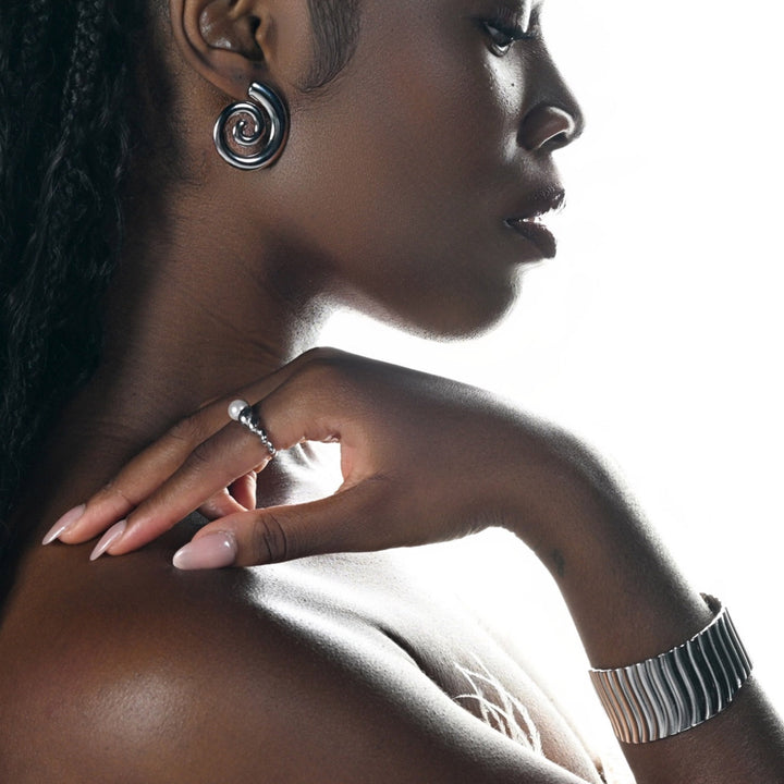 This Montego Glow Cuff by Superdivajewellery is a radiant piece that captures the essence of a sun-drenched island. With its luxe silver finish and sunbeam-inspired shape, the cuff exudes confidence and energy. The flowing lines and textured details create a dynamic, sculptural look, making it a bold and captivating statement piece for those who want to carry the spirit of the tropics with them wherever they go.