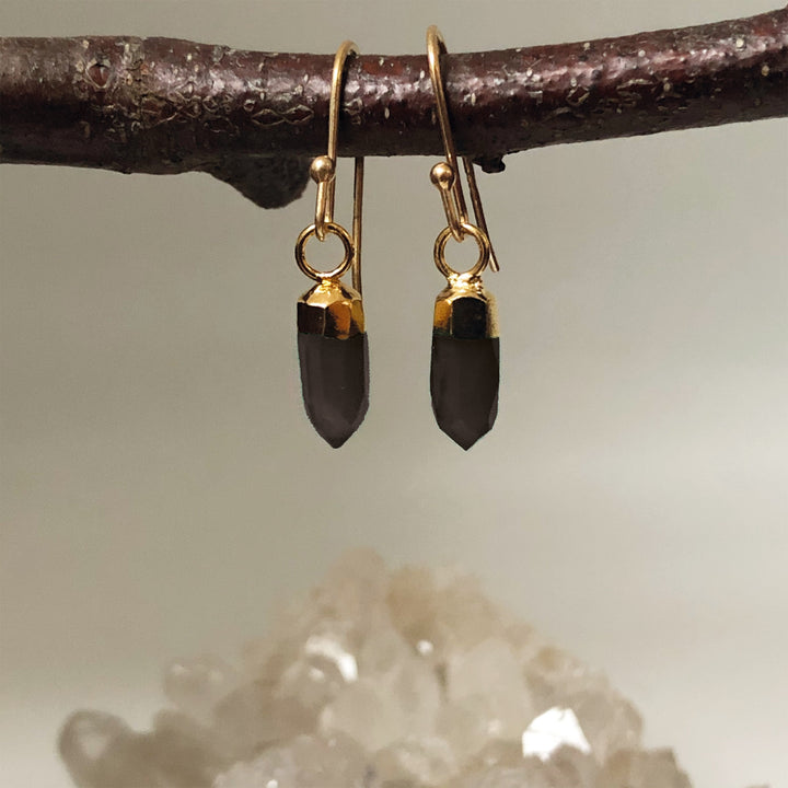 These earrings feature mini point black onyx stones. They are made from gold vermeil and silver.