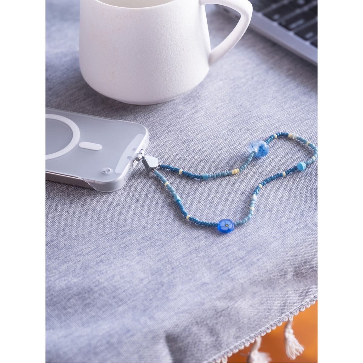 Handmade with Japanese Miyuki beads and high-grade American bead thread (supports up to 5kg). Stainless steel buckle attachment. Compatible with cases with charging hole.