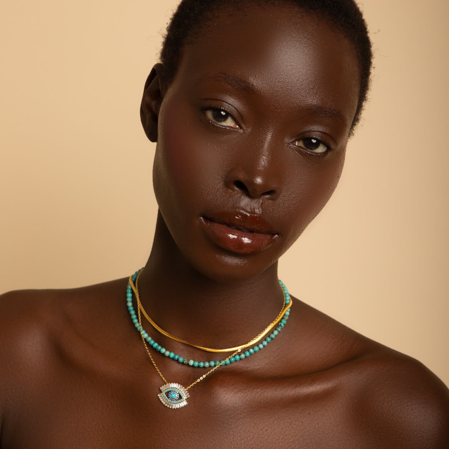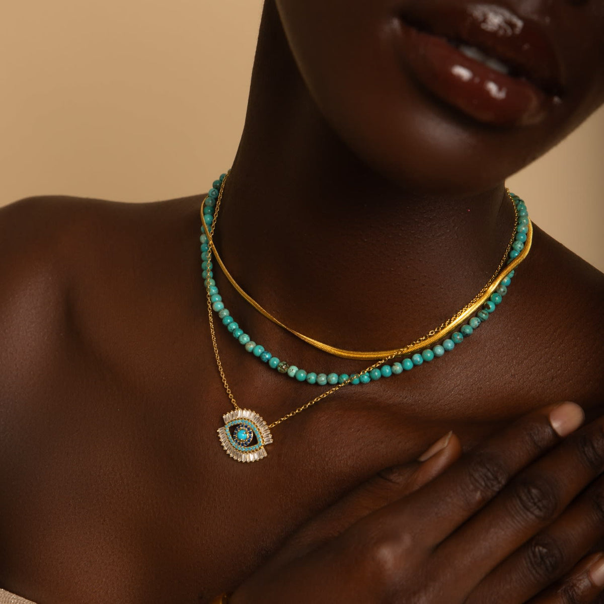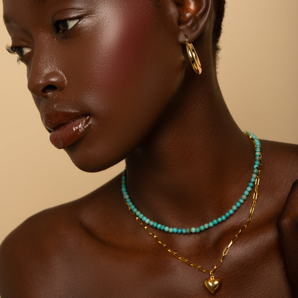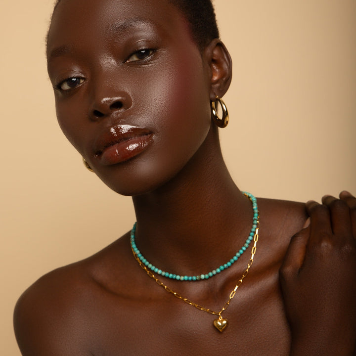 This Turquoise Choker Necklace by Seven Saints is a beautiful and versatile accessory that is believed to boost success and good fortune. Handmade in California, this choker features genuine turquoise gemstones that amplify positive energy, helping you achieve your goals. It is a perfect and meaningful accessory for adding prosperity and positive vibes to your life.