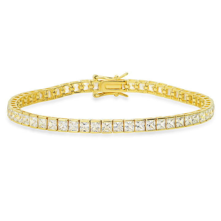Gold Princess Cut Diamond Cz Tennis Bracelet