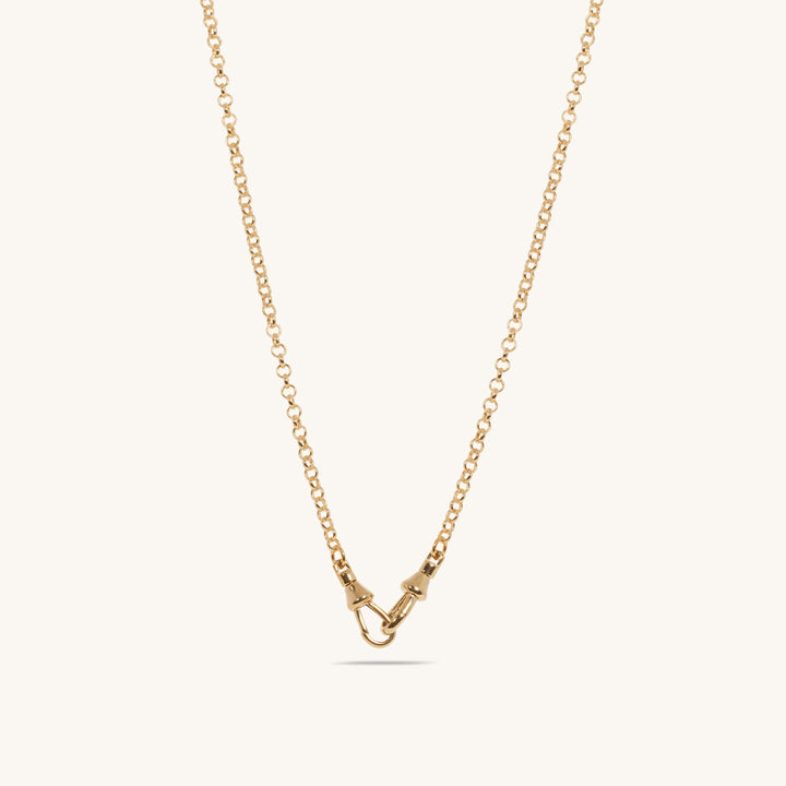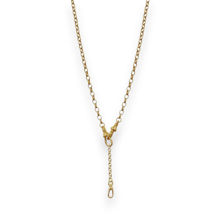 This Y Drop Customizable Rolo Chain by Alexie of Athens is a versatile and adaptable accessory. With a removable extender, the chain can be worn as a Y drop or with a simple front-lock swivel closure. This allows for endless possibilities for adding charms and is crafted to be more than an accessory—it's a part of your story.