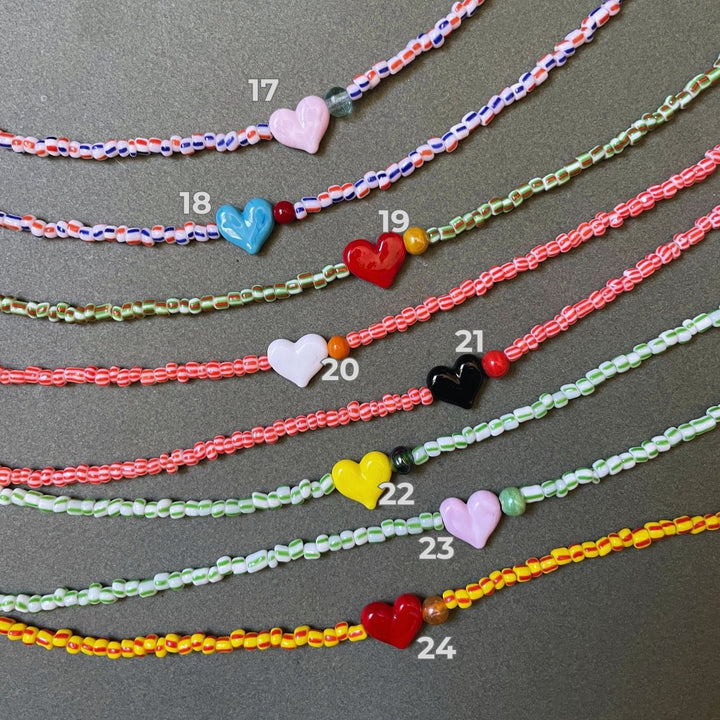 Small Talk | Nineteen Out Of Twentyfour — Striped Glass Bead Necklace With Murano Heart