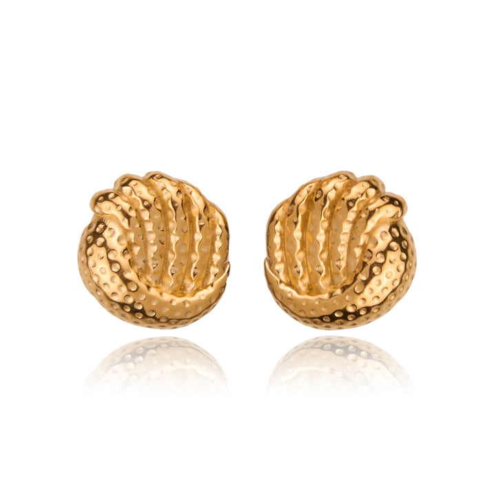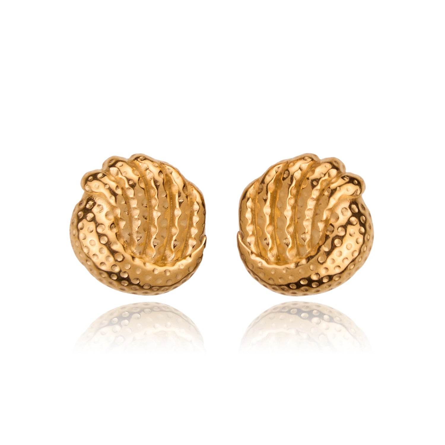 Zuri Gold Plated Statement Earrings by Tseatjewelry are a bold and playful accessory. These earrings feature edgy spike designs and a gold finish, adding a fun and edgy touch to your everyday style. Made with 18k gold-plated stainless steel, they are a playful addition to any jewelry collection. They are perfect for making a bold fashion statement.