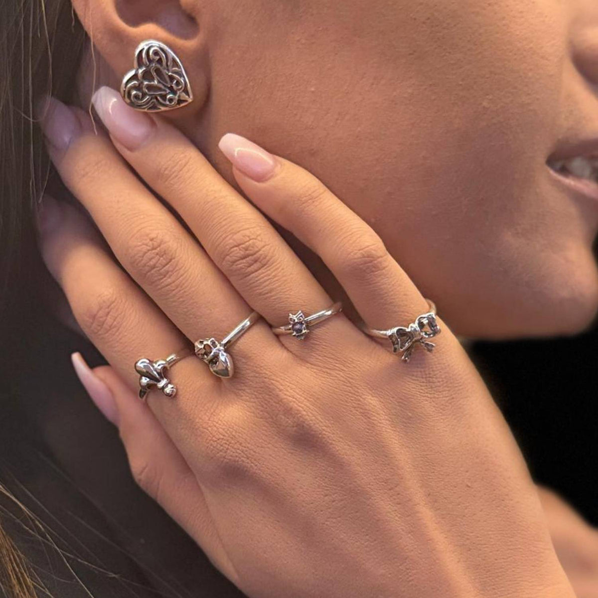 This Adjustable Ring With Crown and Heart in Sterling Silver by Unaloe tells a story of love and loyalty. The crowned heart motif symbolizes devotion, noble spirit, and protection, while the adjustable fit ensures versatile wear. Entirely handcrafted in Italy, this ring blends timeless romance with modern minimalism — perfect as a personal emblem or as a meaningful gift of affection.