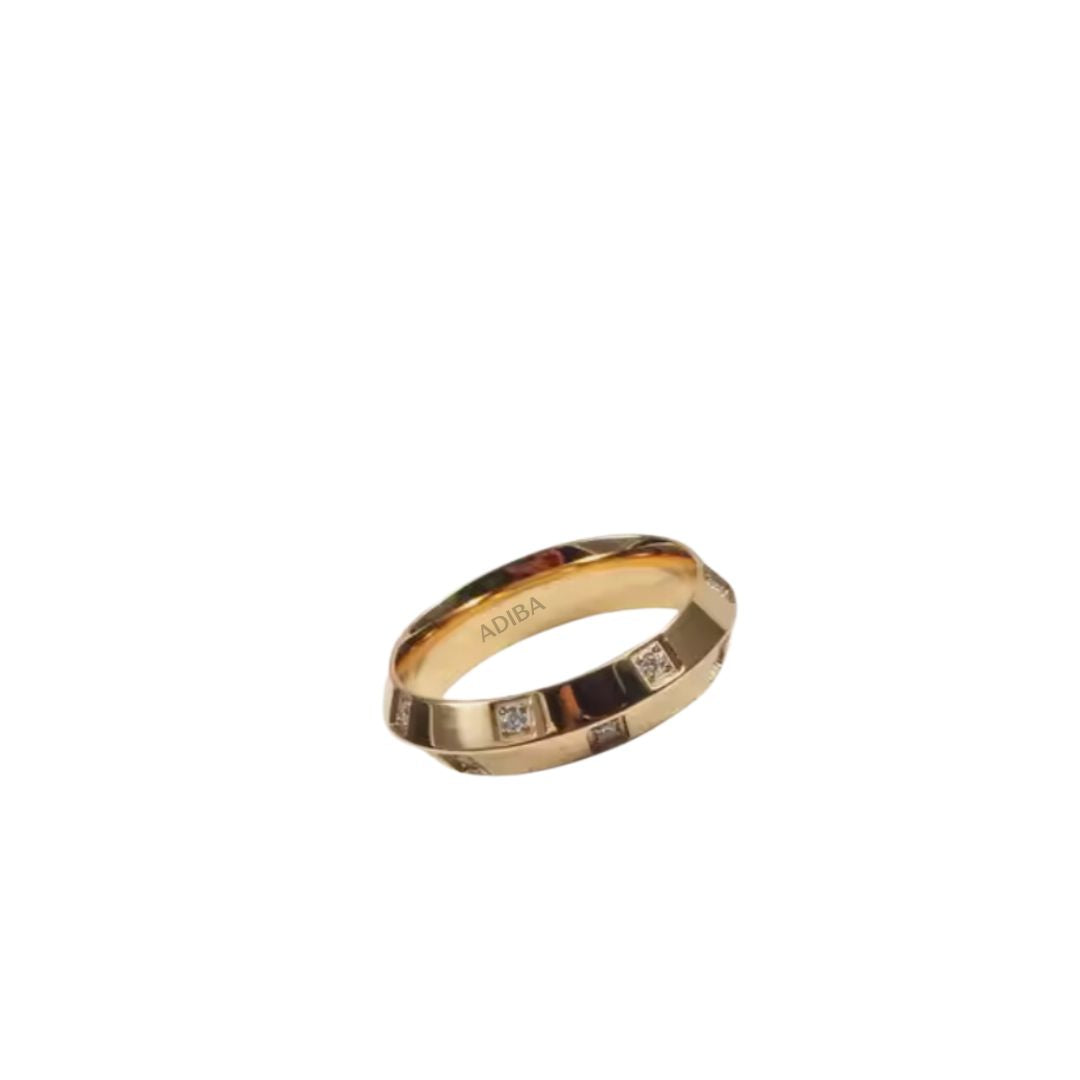 This band ring is crafted from high-quality 304 stainless steel with 18k gold plating. It is set with mini zirconia stones. It is waterproof, long-lasting, and nickel- and lead-free.