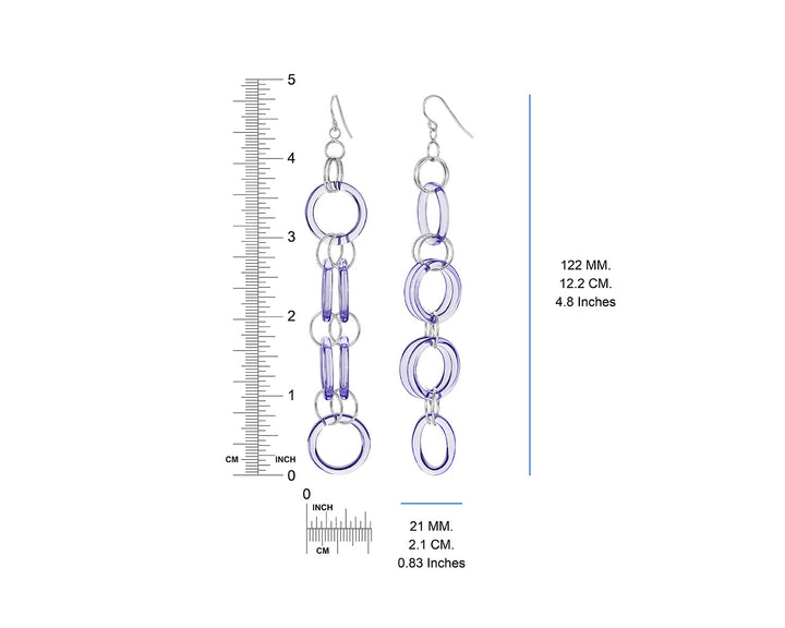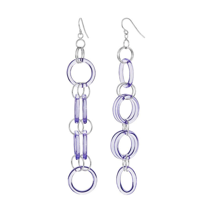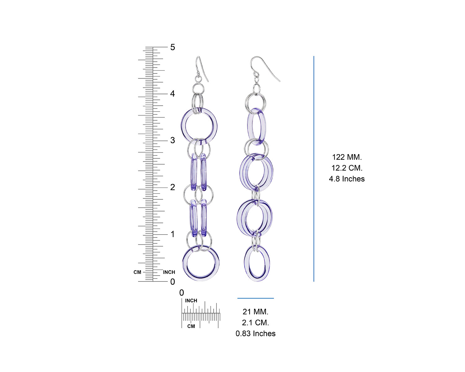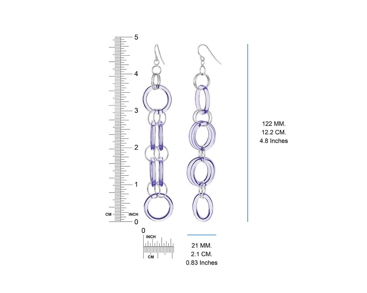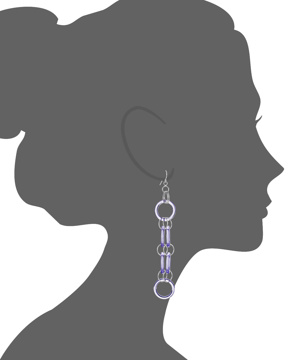 The Purple Circle Links Drop & Dangle Earrings by Gold & Honey are a sweet accessory for all-day wear. These light and easy-to-wear earrings feature translucent purple lucite and silver links, creating a subtle pop of color and a sweet look. The design is versatile enough to be worn from day to night, adding a touch of charm and elegance to your style.
