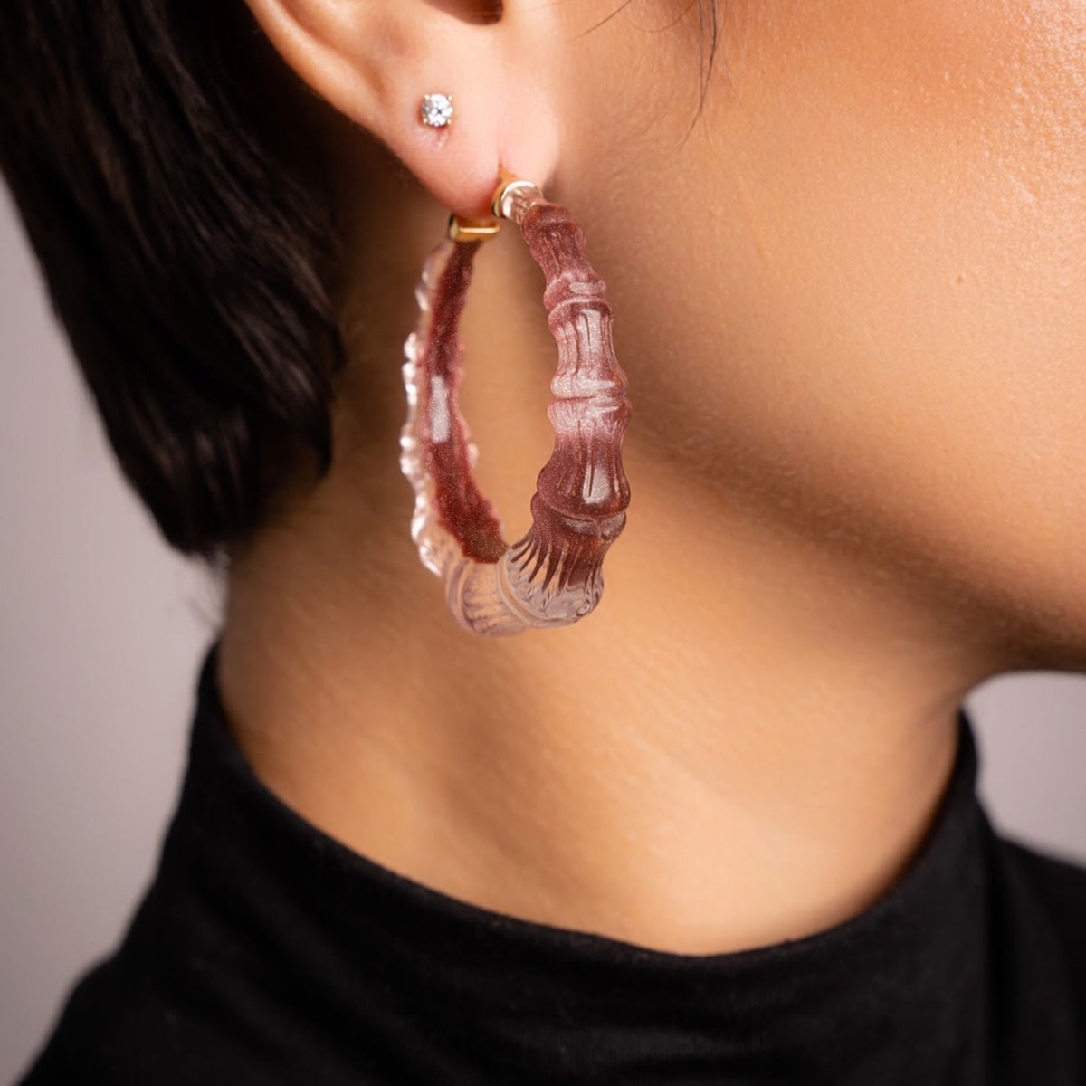 Bamboo Illusion Hoop Earrings In Cocoa Brown