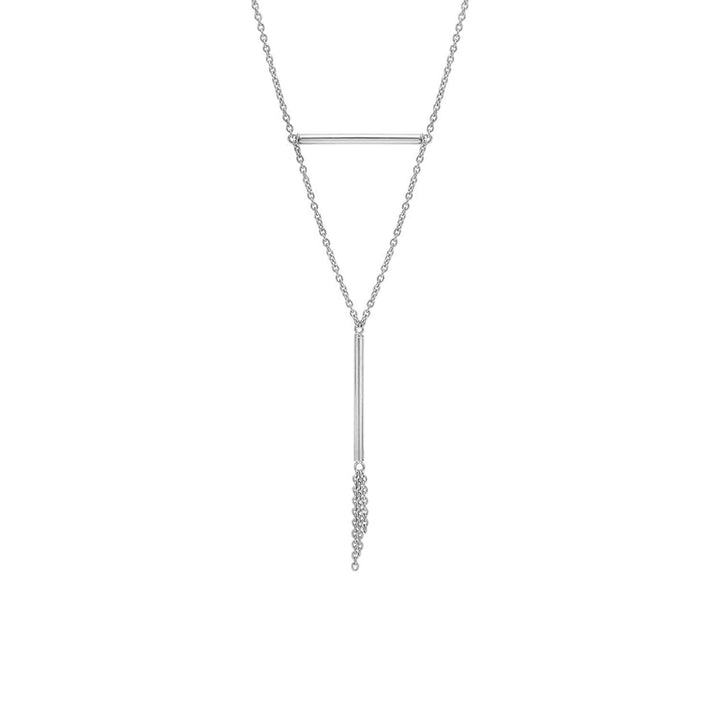 This Tassel & Bar Y-Necklace by Gold & Honey is a modern boho-chic accessory with added drama. This sterling silver necklace is 18 inches long with a 2-inch extender. It features a tassel drop for a stylish look. This versatile necklace is perfect for both everyday wear and special occasions, adding a unique touch to any outfit.