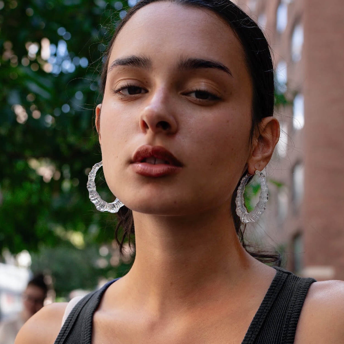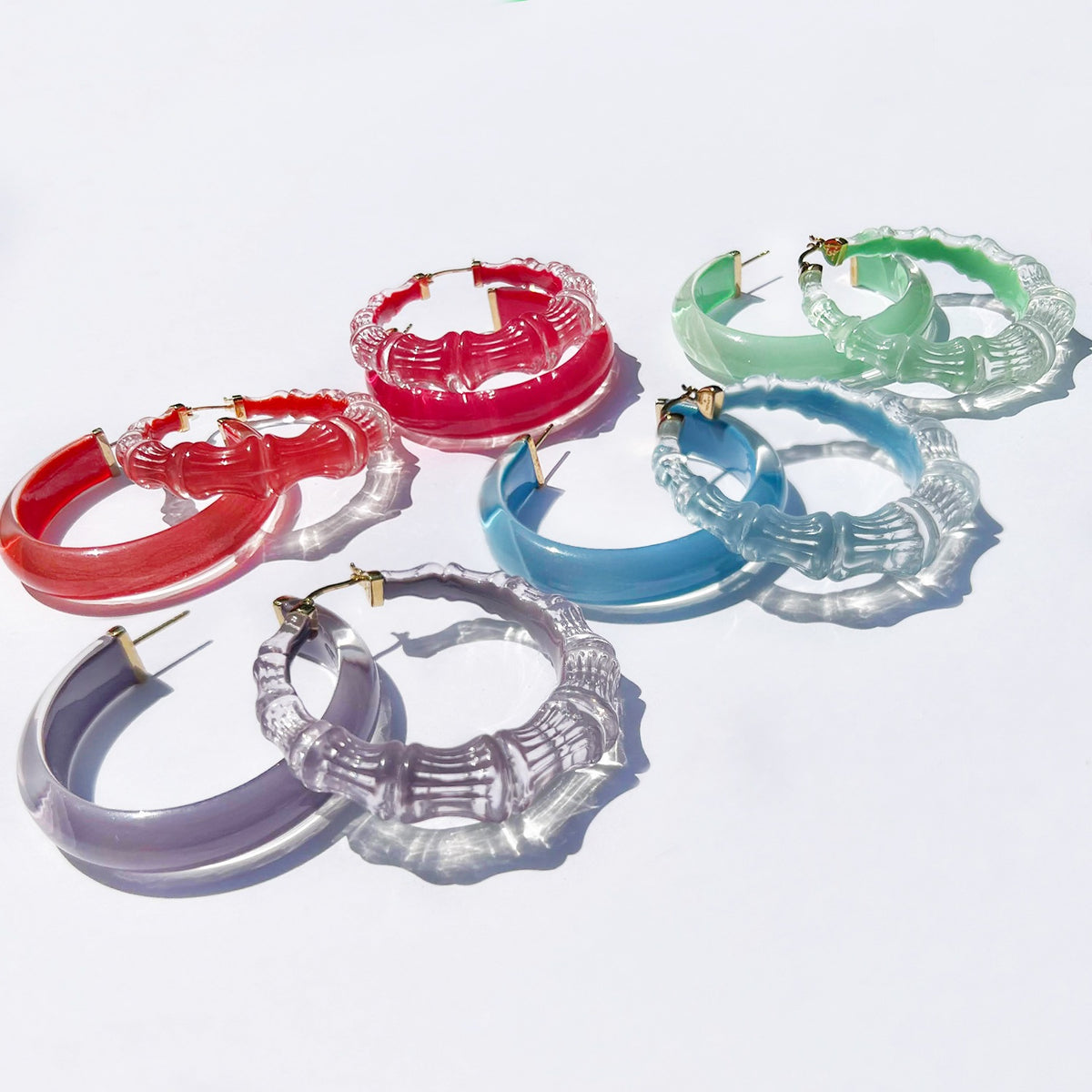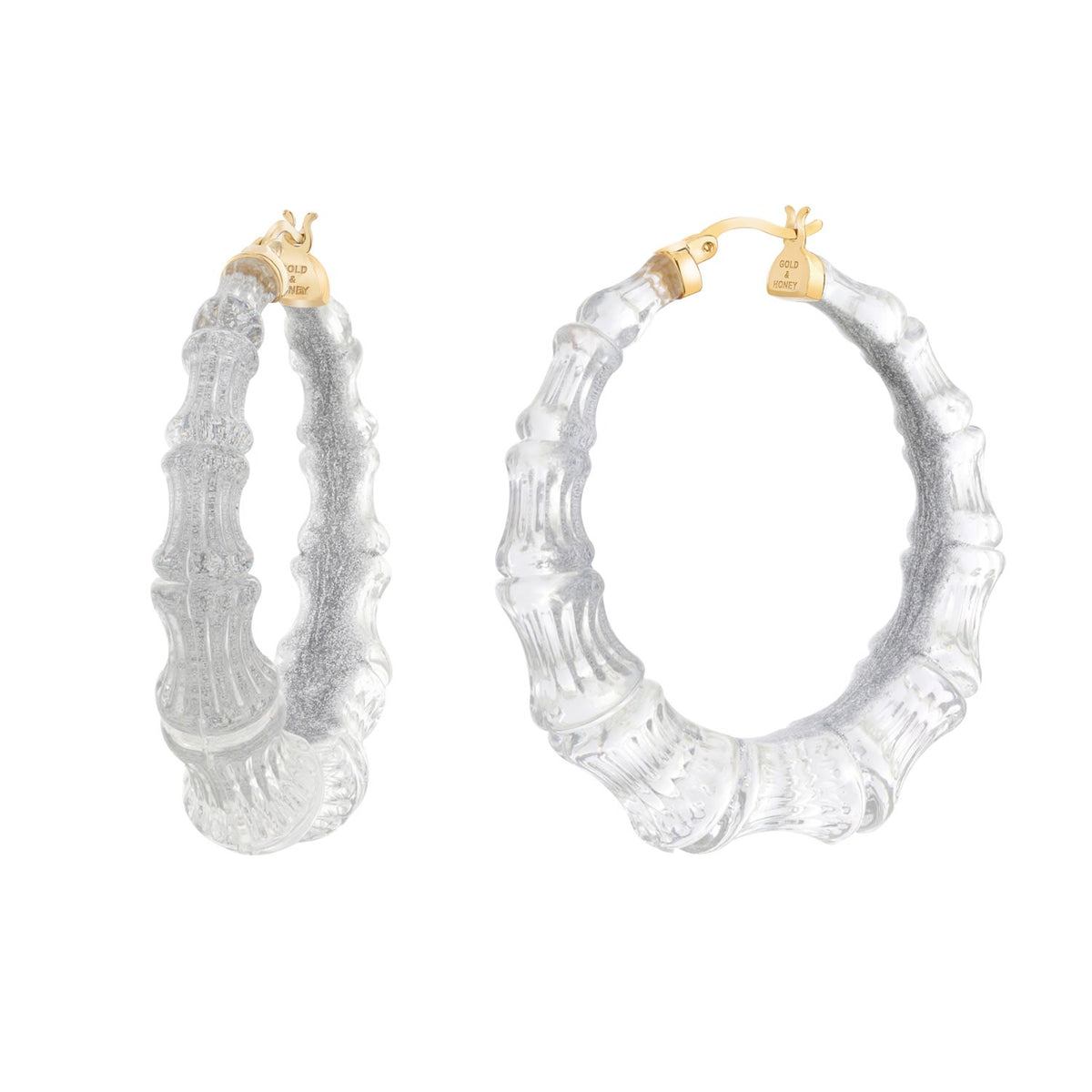 These Bamboo Illusion Hoop Earrings in Pixie Silver by Gold & Honey are a classic 90s hoop with a twist. The glass-like lucite and hand-painted enamel give these hoops a color pop and shine, making them a true must-have. When you look at them from the front, they are a vibrant, full color, and when you turn to the side, they are clear, providing a unique illusion effect. These earrings are a fun, bold statement piece that everyone will love.