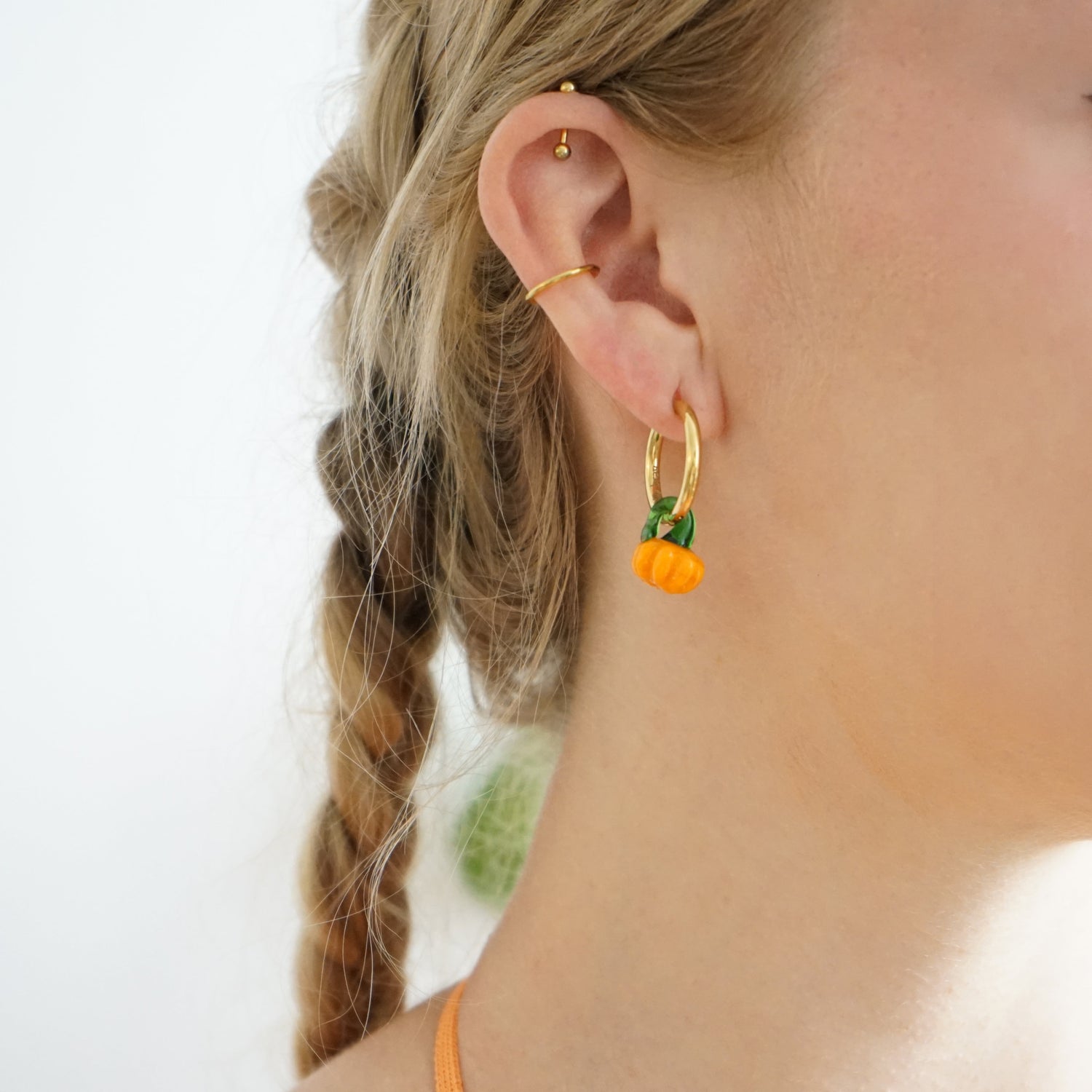 These Murano Glass Pumpkin Hoops by Smilla Brav bring whimsical charm with seasonal flair. Crafted in Germany from recycled gold-plated stainless steel, each hoop features removable Murano glass pumpkin pearls for versatile wear. Playful yet elegant, they’re a sustainable piece that can shift from festive to everyday chic with ease, making them a delightful addition to any collection.
