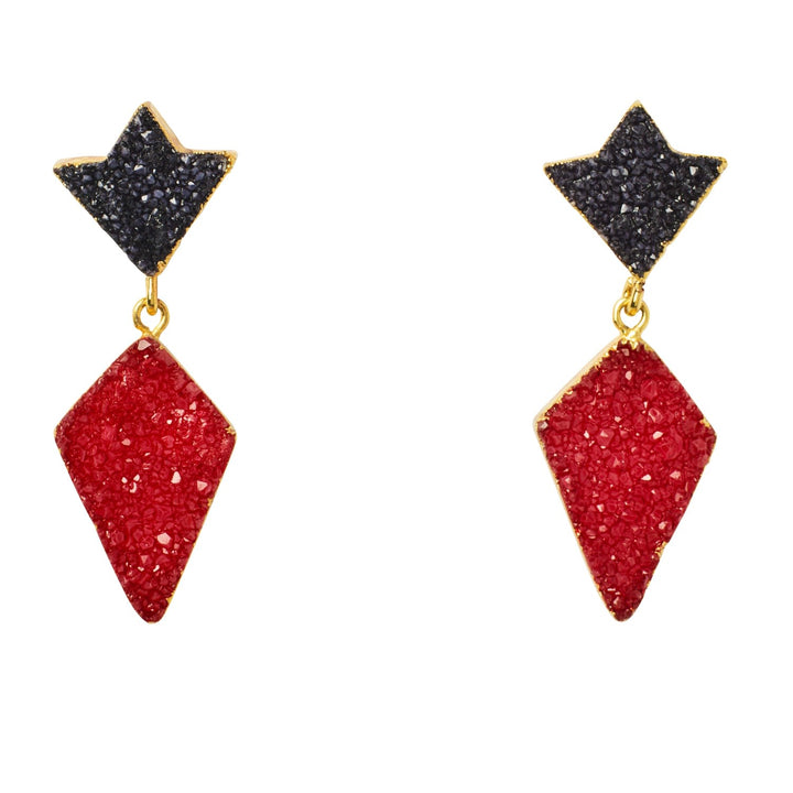 Princess Red Black Druzy Gold Earrings