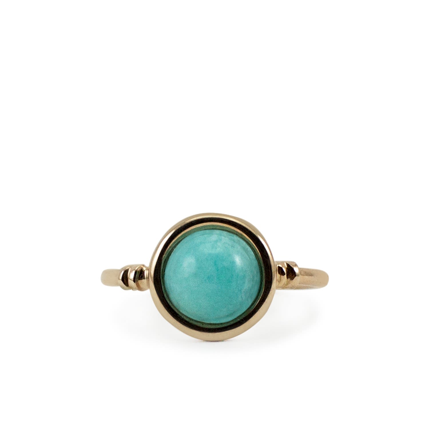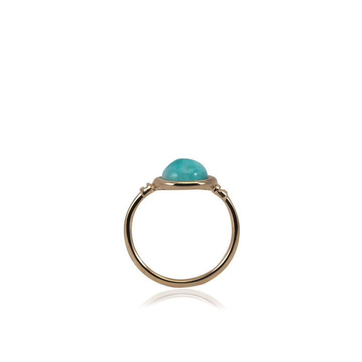 This ring is handcrafted from rose gold vermeil and is decorated with an amazonite stone. It is nickel-free.