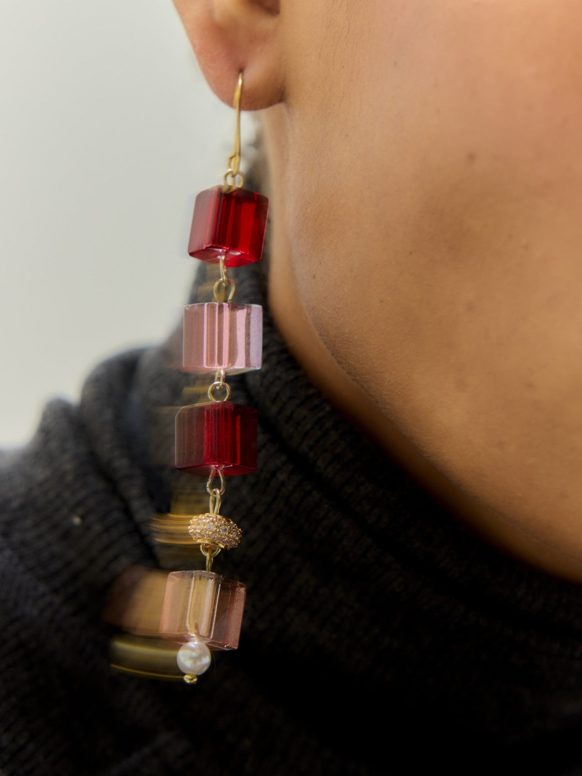 These Twins Earrings - Red by Sita Nevado are a bold and elegant accessory designed to make a statement. The earrings feature a striking set of square crystal pendants in a vibrant red color, suspended from a hook clasp. Their sleek design and eye-catching drop length make them a perfect accessory for adding a touch of sophisticated drama and a pop of color to any outfit. They are ideal for those who appreciate modern, artistic jewelry that stands out.