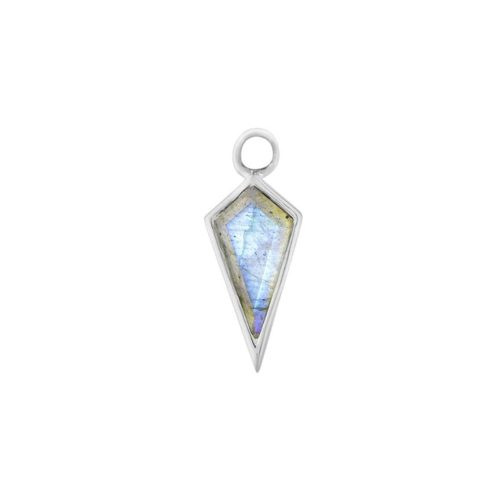 This is a single earring charm crafted from solid sterling silver. It features a rhombus-shaped labradorite stone.