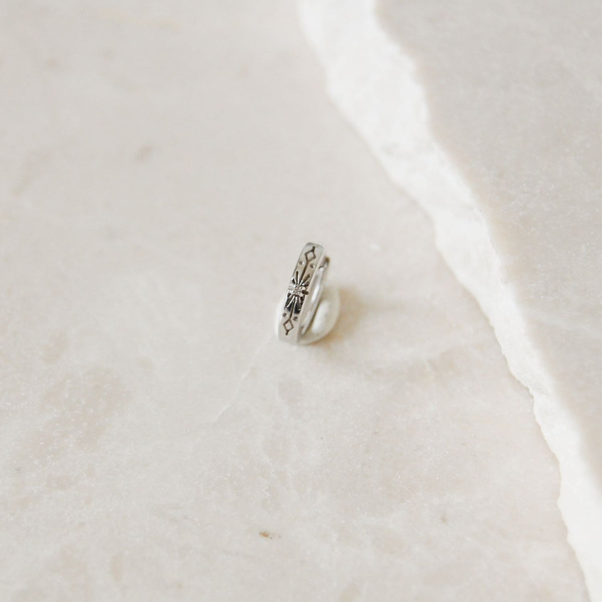 White Sapphire Starburst Huggie Hoop Earring Sterling Silver