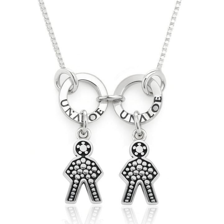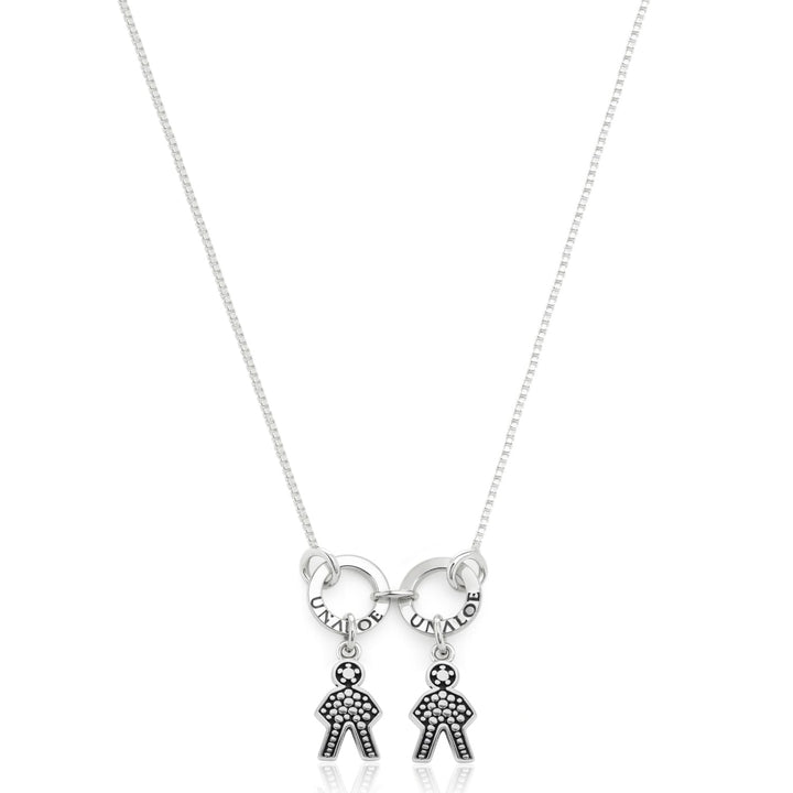 This Sterling Silver Women’s Necklace With Double Figure Pendant by Unaloe embodies tenderness and personalization. Featuring two sculpted charms that symbolize special bonds, the necklace is an elegant tribute to love and family. Its artisanal craftsmanship and Italian design heritage ensure authenticity, making it a meaningful and timeless addition to any collection.