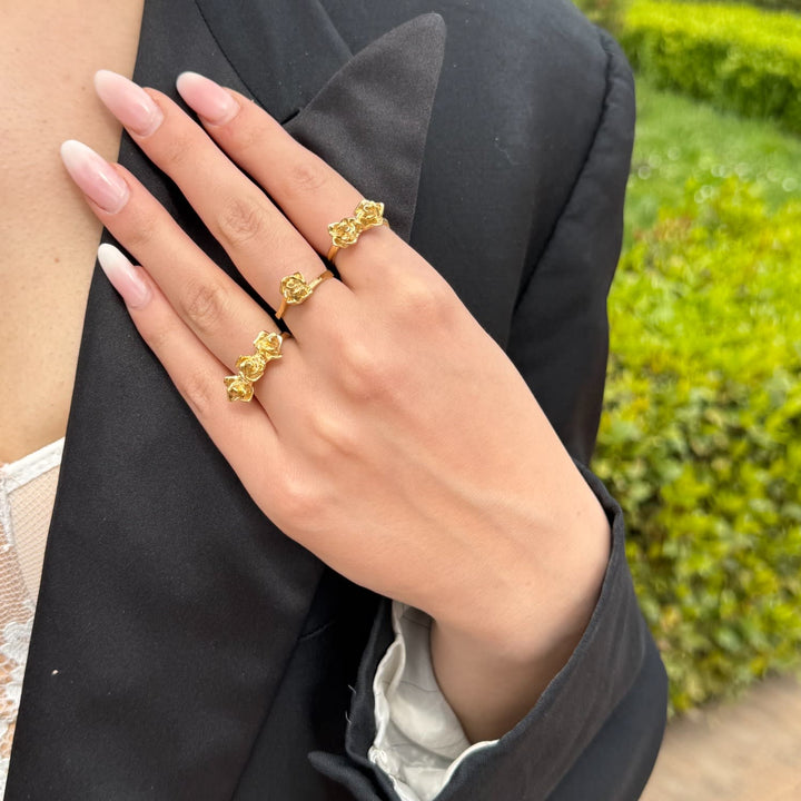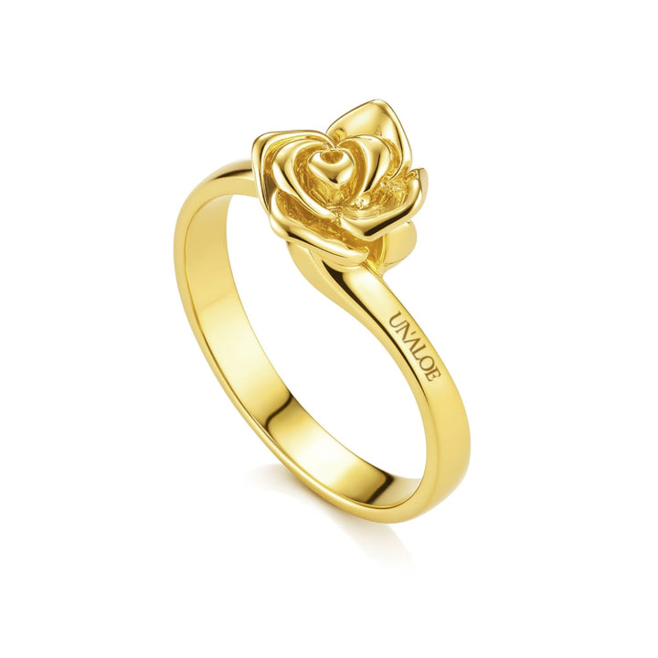 This Gioia Ring by Unaloe embodies life’s beauty and the purity of the rose, a symbol central to the brand’s Eden collection. Handmade in Italy, it features a sculptural Unaloe rose at its heart, radiating simplicity and timeless elegance. With its gold-plated finish over sterling silver, this piece balances artisanal charm with refined style, making it a meaningful token of endless bonds and a versatile addition to any jewelry collection.
