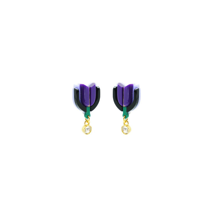 These Acrylic Handmade Earring S Alamanda Aubergine by Gissa Bicalho are a unique and artistic accessory. Handcrafted by Brazilian artisans, these earrings feature a bold aubergine color with glass rhinestones, a zamak pendant, and a brass chain with a golden finish. Their unique design and striking color make them a true statement piece that adds an elegant flair to any outfit.