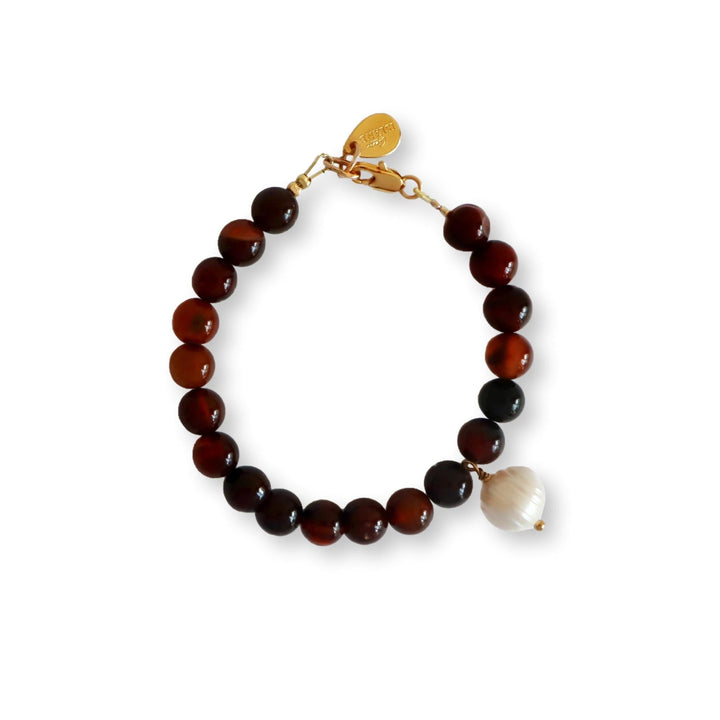 This Bruna Bracelet by Gem Island balances warmth and tenderness with its mix of Baroque pearl and agate. Agate, symbolizing luck and focus, complements the feminine softness of mother-of-pearl for a design rich in meaning. Its golden tones and natural gems create a radiant bracelet infused with symbolism and grace.