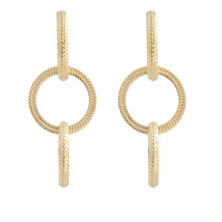 Handmade in Brazil. 18k gold-plated textured brass links with interlocking design. Post-back fastening. Lightweight for comfortable wear.