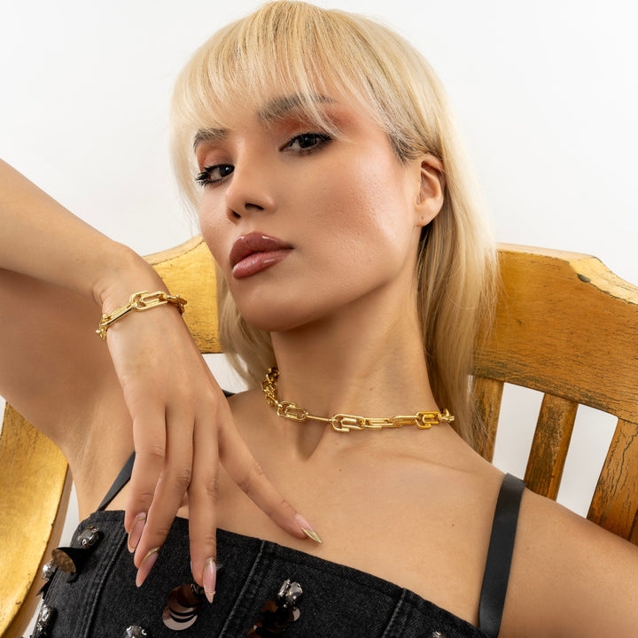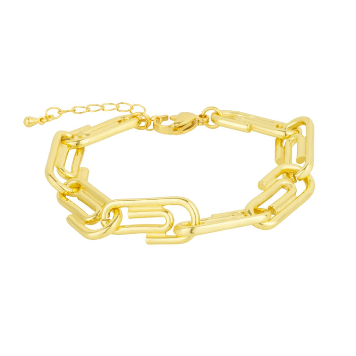 This Paperclip Chain Gold Designer Bracelet by Mejoma is a stunning and luxurious accessory. The unique paperclip chain design adds a touch of elegance and sophistication to any outfit. Made from high-quality materials, this bracelet is designed to last and is the perfect piece to elevate your style and make a confident statement on any occasion.