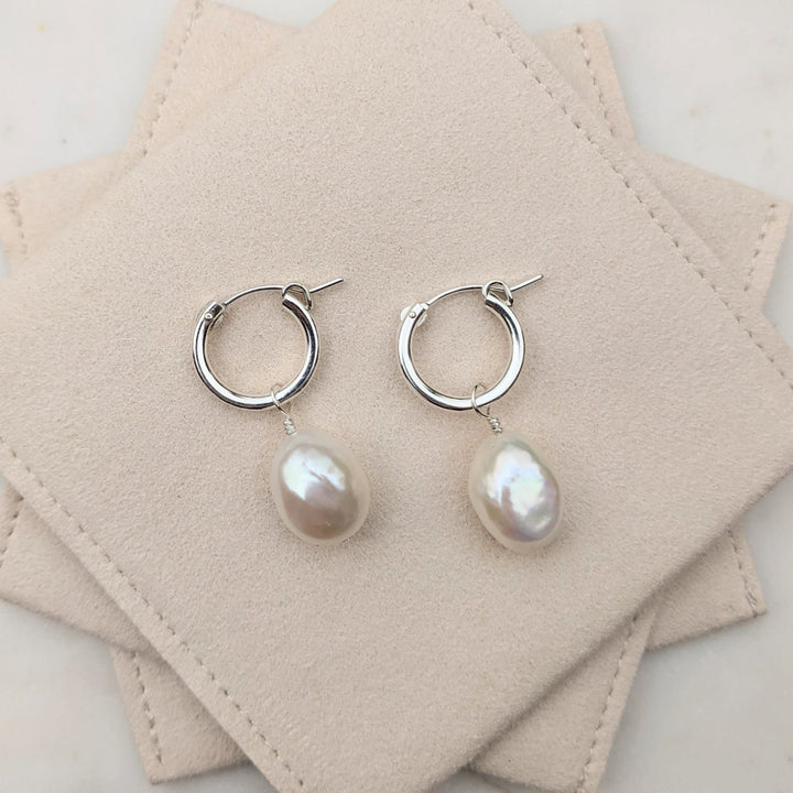 Sia Sterling Silver Baroque Pearl Hoop Earrings