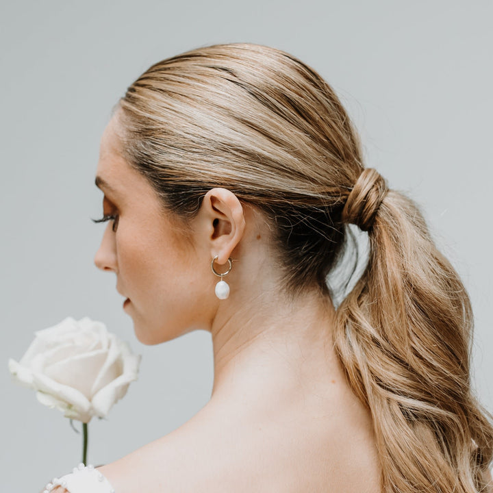 These Sia Sterling Silver Baroque Pearl Hoop Earrings by Kiri & Belle are a modern and elegant accessory. The gorgeous sterling silver hinged hoops suspend a single large baroque pearl, creating a beautiful and edgy style. Each baroque pearl is unique in its shape, making every pair of earrings one of a kind. They are versatile enough for any occasion, from a day at the office to a night out.