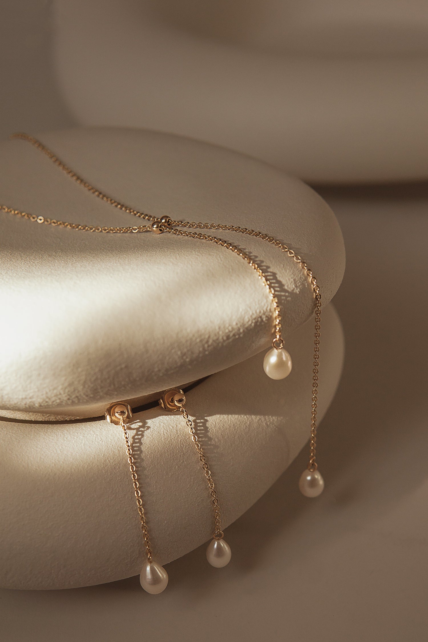 Handmade with mini freshwater drop pearls and 14K gold-filled findings. Hypoallergenic and safe for sensitive skin.