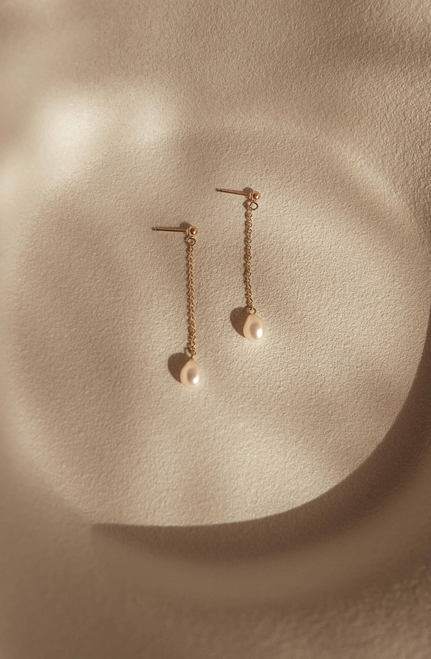 These Leana Earrings by Katy Faye are a romantic study in refinement. Mini freshwater pearls dangle gently from 14K gold-filled findings, radiating natural elegance. Delicate yet versatile, they arrive in silk pouchette packaging, making them a thoughtful gift or keepsake for everyday wear and special moments alike.