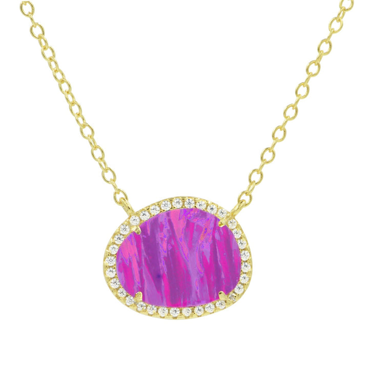 This Opal Kokoto Necklace – Fuchsia by Kamaria shimmers with radiant beauty and heartfelt meaning. The lab-created opal glows in vibrant fuchsia tones, encircled by pavé crystals for extra brilliance. Inspired by the Swahili word “Kokoto” meaning pebble, each piece is unique and symbolizes individuality. A necklace of beauty and purpose, supporting survivors through Kamaria’s mission.