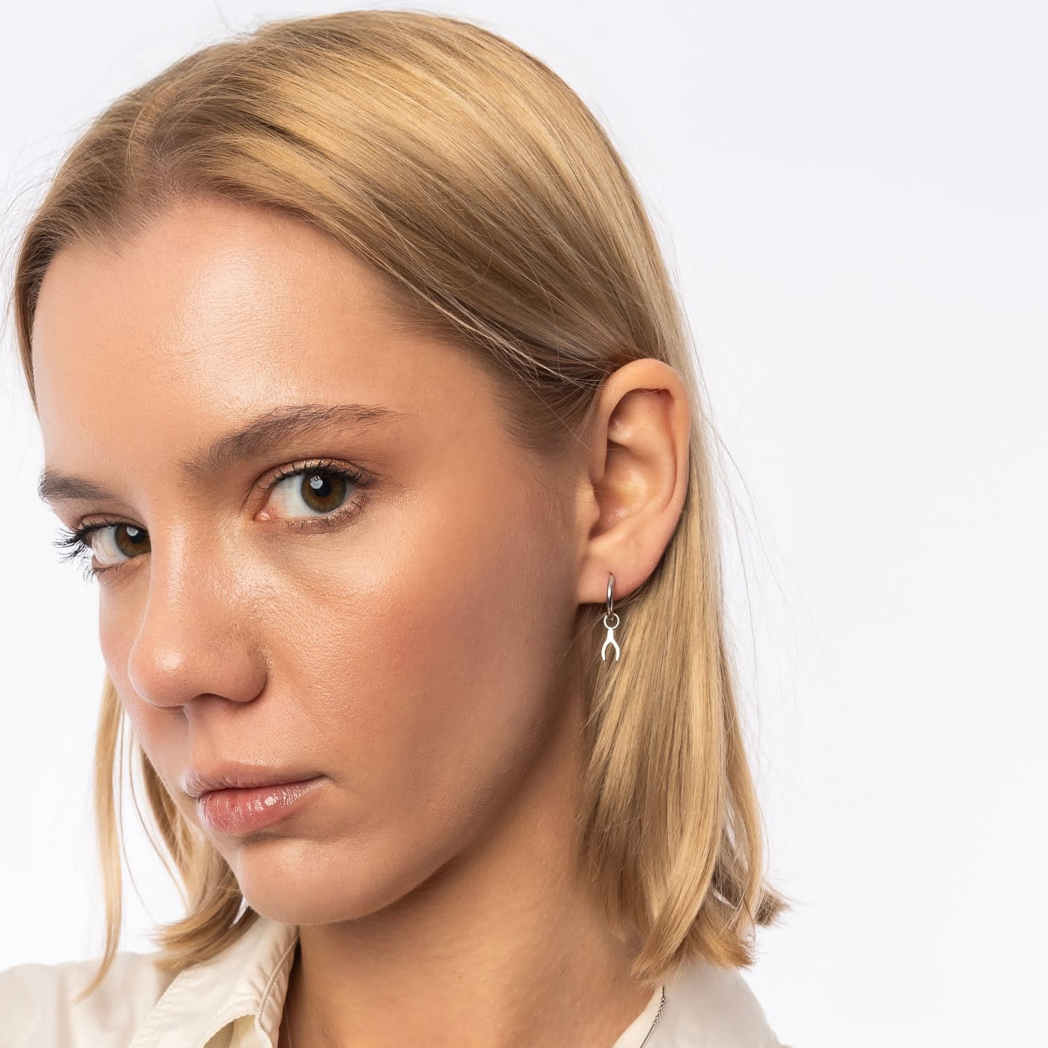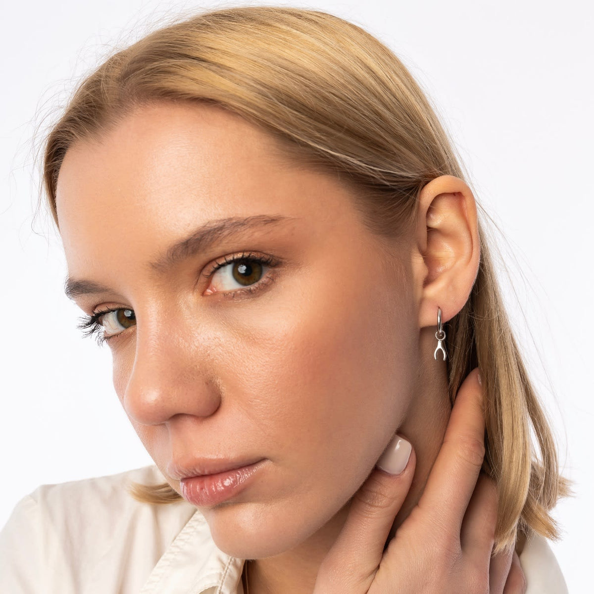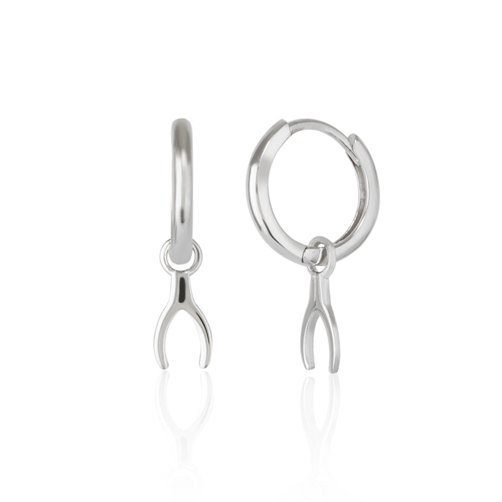 These earrings are crafted from 100% fine sterling silver and feature wishbone drop charms.