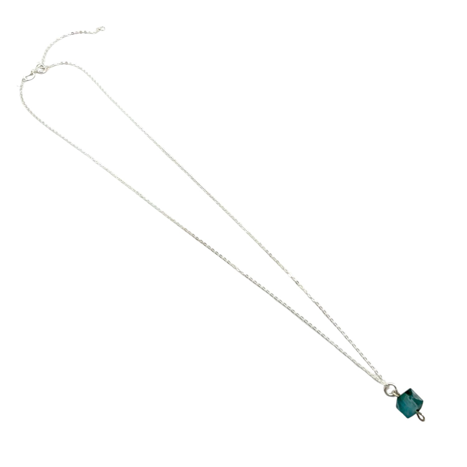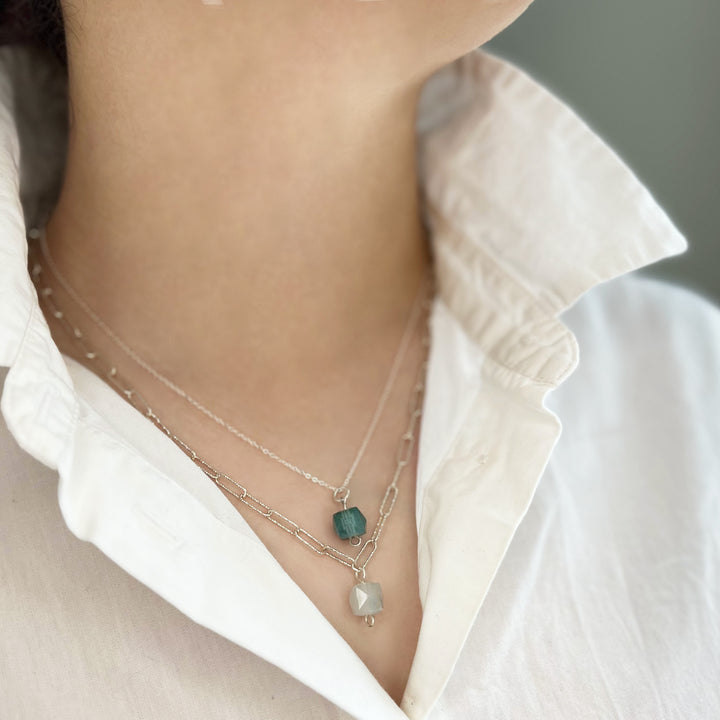 Faceted Bio-Gem formed from plant fibers. Recycled sterling silver adjustable chain (18"–20"). Handmade in London.
