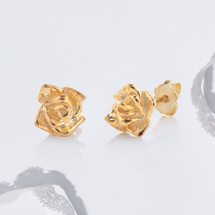 Handmade in Italy in 925 sterling silver with 18k gold plating. Features sculpted rose motif. Weight approx. 2g. Nickel-free and eco-sustainable.