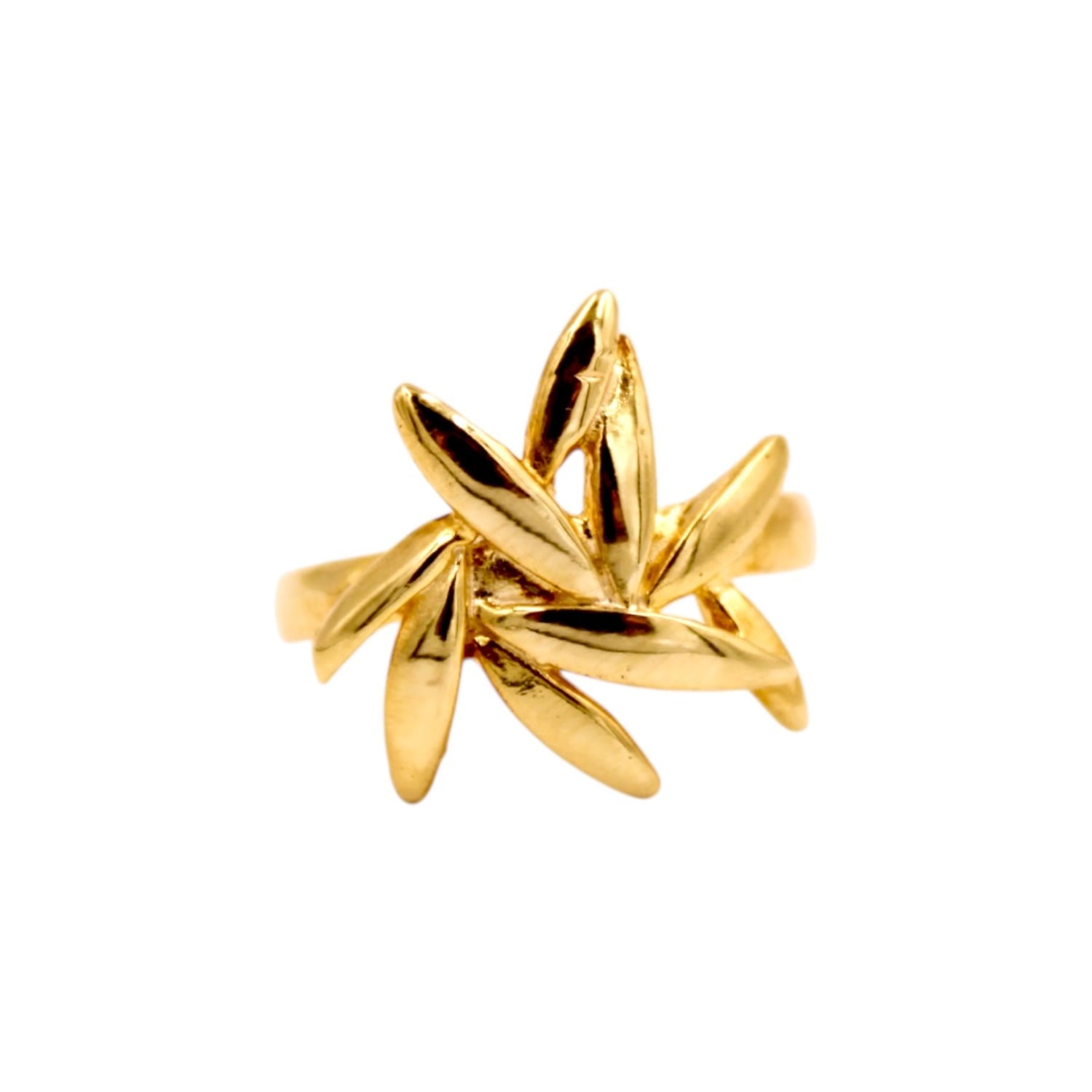 This ring is crafted from sterling silver and is gold-plated. It has a neo-classical design, inspired by The Cité Française.